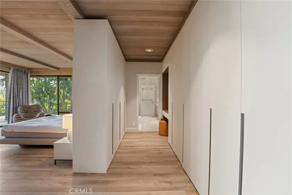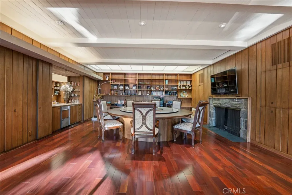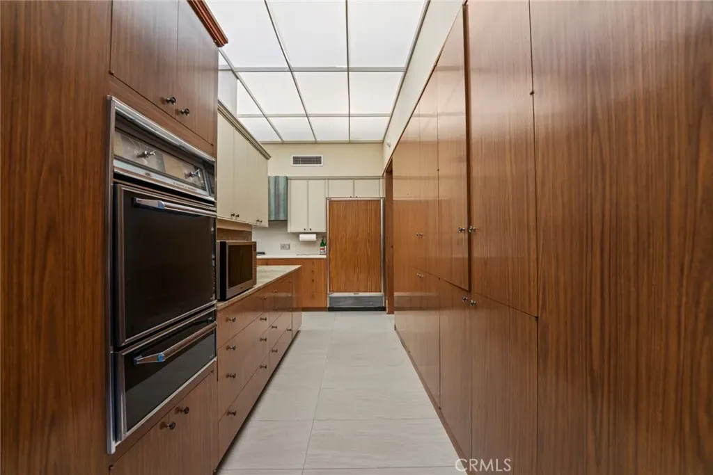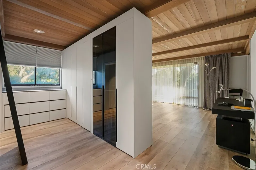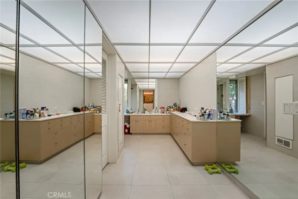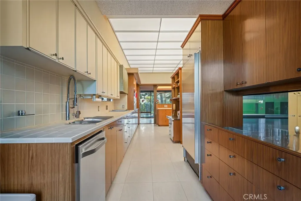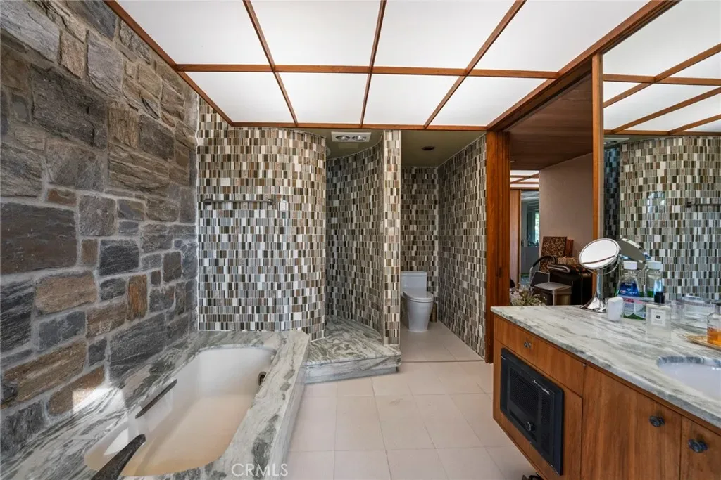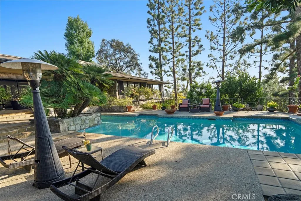 Perched on approximately 1.5 acres in the Langham Huntington enclave, this is a landmark Mid-Century Modern compound that celebrates glass, wood, and stone in harmony with sweeping garden and city-light vistas. Designed by noted architect Harold Zook, the residence showcases expansive window walls, crafted mahogany accents, and signature Bouquet Canyon stonework. An inviting foyer leads to voluminous living and dining spaces oriented to landscaped courtyards, while a catering-scale kitchen anchors a casual breakfast area and a generous family room with pool views. The private primary suite enjoys treetop panoramas, a sitting room, and dual dressing rooms/baths; four additional bedroom suites provide exceptional flexibility. Recent improvements by the current owner include a full remodel of the downstairs bedroom and new flooring throughout the home. Resort amenities span a sparkling pool, true north-south tennis court, and immersive gardens, complemented by skylights, dual-zone HVAC, security system, delivery reception area, potting shed, a four-car garage, and gated entry. A rare offering of scale, privacy, and pedigree in one of Pasadena’s most sought-after locations.