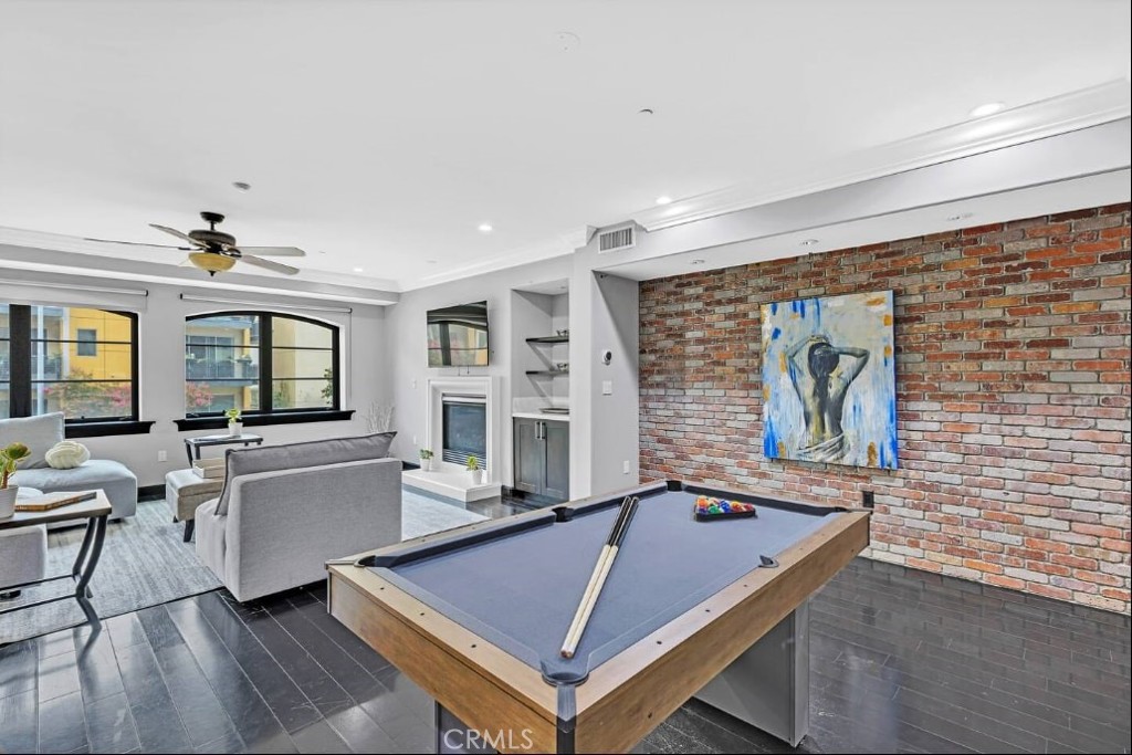 This beautiful 2 bed, 2 bath condominium is located in the upscale Terra Bella in the heart of Pasadena. Situated on the second floor, this elegant unit provides the feel and privacy of a single-family home, while the Terra Bella boasts the amenities of a luxury hotel with gym, spa and pool on the rooftop. The inside of the unit is lined with crown molding, recessed lights granite counter tops, and maple engineered hardwood floors. The picturesque great room features a lovely electric fireplaces, the exquisite kitchen features granite countertops, Italian cabinets, and Viking Professional appliances. The large master bedroom includes a walk-in closet and a charming fireplace along with a full en-suite bathroom with a walk-in shower, a spa bathtub, and heated marble tile flooring. There are multiple custom-built accessories though out.
