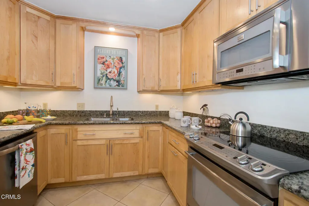 This single-level, ground-floor 2-bedroom, 2-bath condo is located in a highly desirable West Pasadena neighborhood, just steps from the Rose Bowl Stadium, Gamble House, Old Town Pasadena, and Brookside Golf Course. Residents enjoy convenient access to hiking, biking, and top local attractions, designer shops, and a variety of restaurants. The remodeled unit features wood floors and a wet bar, and the living and dining areas are bright and inviting, with large west-facing windows and sliders that open to a covered patio and gardens, including a sparkling pool that hosts California sunsets. The updated kitchen includes granite countertops, tile flooring, a Fisher & Paykel refrigerator, a Frigidaire Professional electric range with an overhead microwave hood, and east-facing windows that illuminate the breakfast area. The primary bedroom offers patio access, two large closets, and an updated bathroom with a double vanity and walk-in shower. The second bedroom features large mirrored closets and a ceiling fan with lights. The second full bathroom includes a double-sink vanity and a shower-tub combination using abundant tile. This move-in-ready home offers all you would want in a turnkey property: comfort and an exceptional lifestyle. FEATURES: Wood & Tile Floors, New Double Pane Windows and Glass Slider, Plantation Shutters, Recessed Lighting, Remodeled Bathrooms with Double Sink Vanities, Ceiling Fans with Lights, Remodeled Kitchen with New Appliances, Wet Bar with Accent Lighting, West-facing Covered Patio, Security Gated Complex, 2 Parking Spaces, Community Pool, Laundry, Gardens, Barbecue & Picnic Area, Rose Bowl & Pasadena Old Town Adjacent, Move-in Ready.