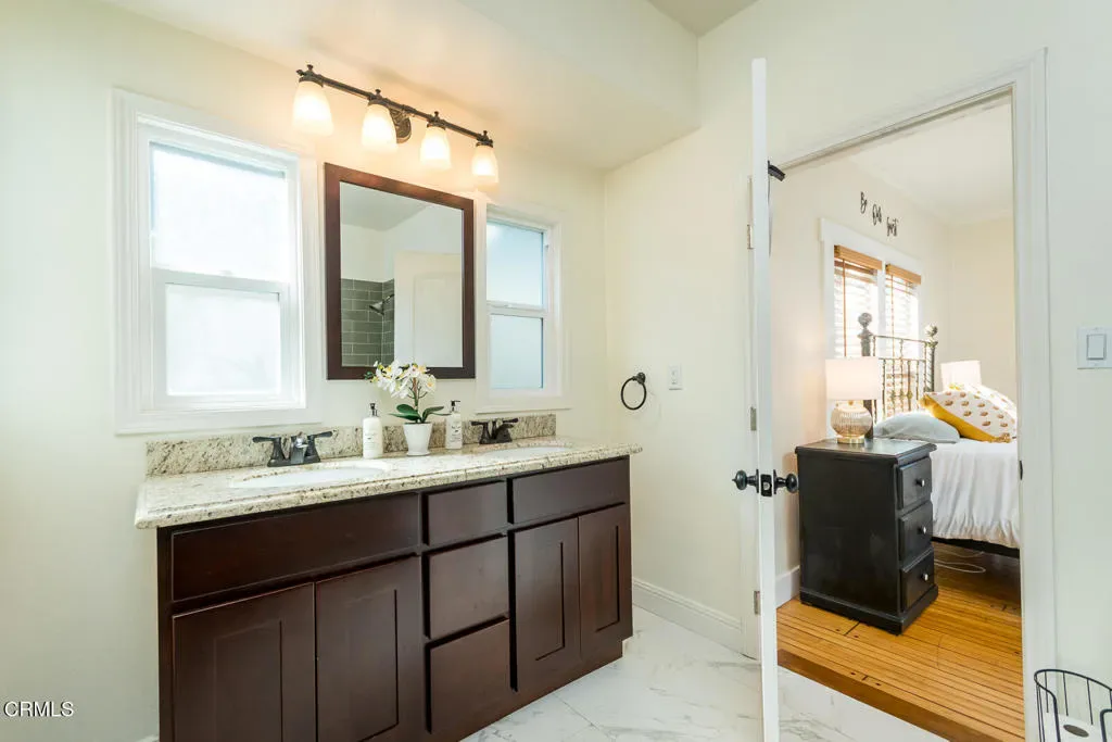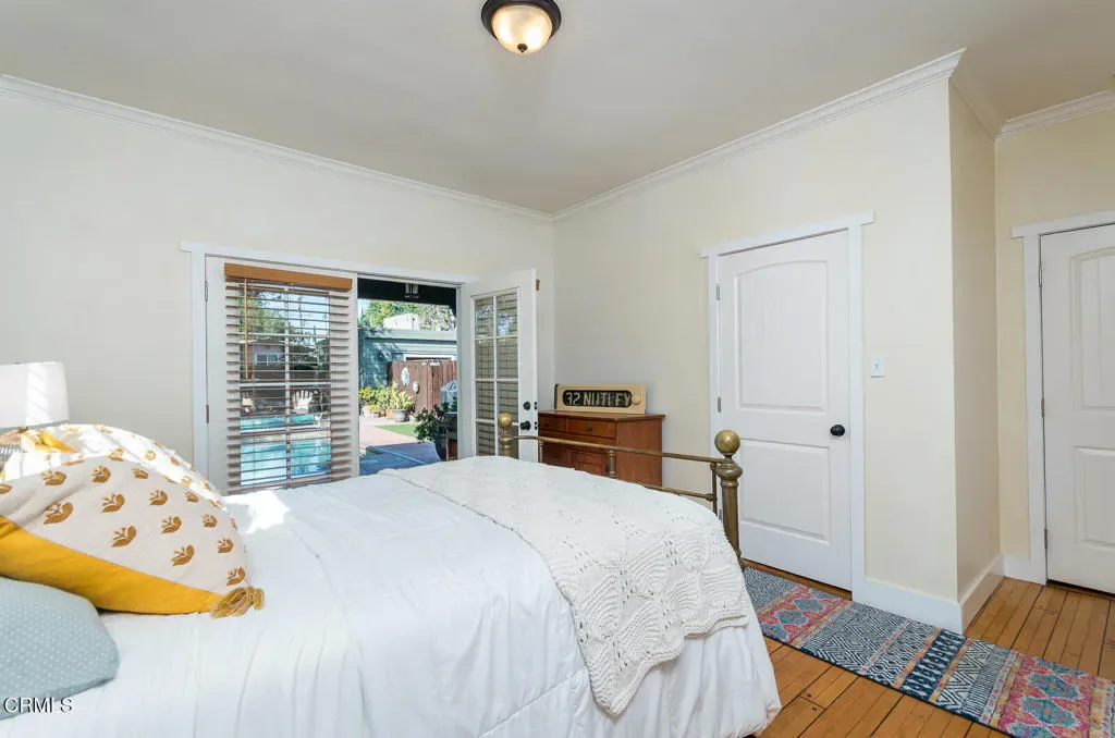 Elegantly updated 1909 Craftsman Style Bungalow that balances architectural character with modern comfort. A brick-ribbon walkway, delightful landscaping, and palm trees lead to the covered front porch, a welcoming place to take in the neighborhood setting.Inside, period details, including box-beam ceilings, wood floors, and large crown molding, anchor the home’s original design. The main level features a spacious living room, formal dining room, and two en-suite bedrooms with updated baths. The remodeled galley kitchen offers quartz countertops, open shelving, refreshed cabinetry, and stainless steel appliances.Upstairs are three additional bedrooms and an updated bath, providing flexibility for a variety of needs. The backyard includes a covered patio, pool, lawn, and multiple areas for outdoor dining. The 600 sq. ft. detached garage offers endless potential for an ADU/studio and garage. Conveniently located near the top of North Los Robles Avenue, close to Christmas Tree Lane, dining, and shopping.