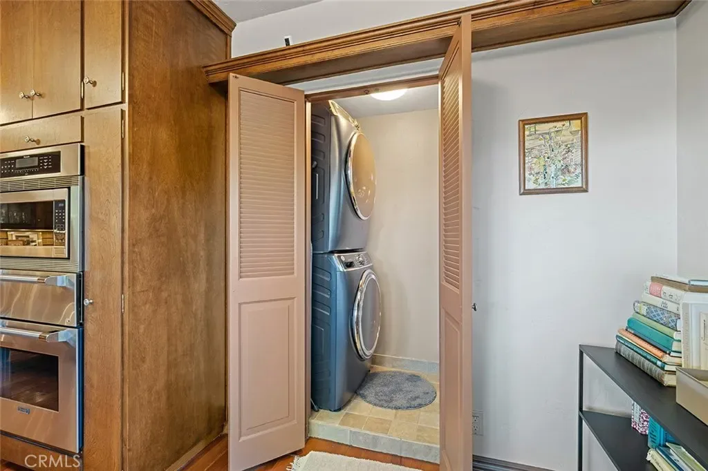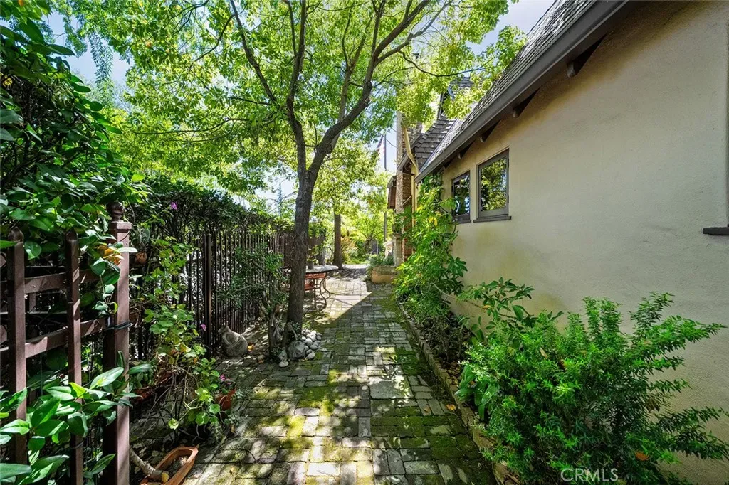 French doors from the formal dining opens to a brick patio for al fresco dining. Note the thoughtfully placed lighting to highlight art and ambiance in the living and dining area while an antique German hutch enriches the dining room w/ a pass through to the warm galley kitchen that includes a wooden rolling table and appliances. Stackable laundry (included) across from breakfast area with an exterior door to the storybook backyard.