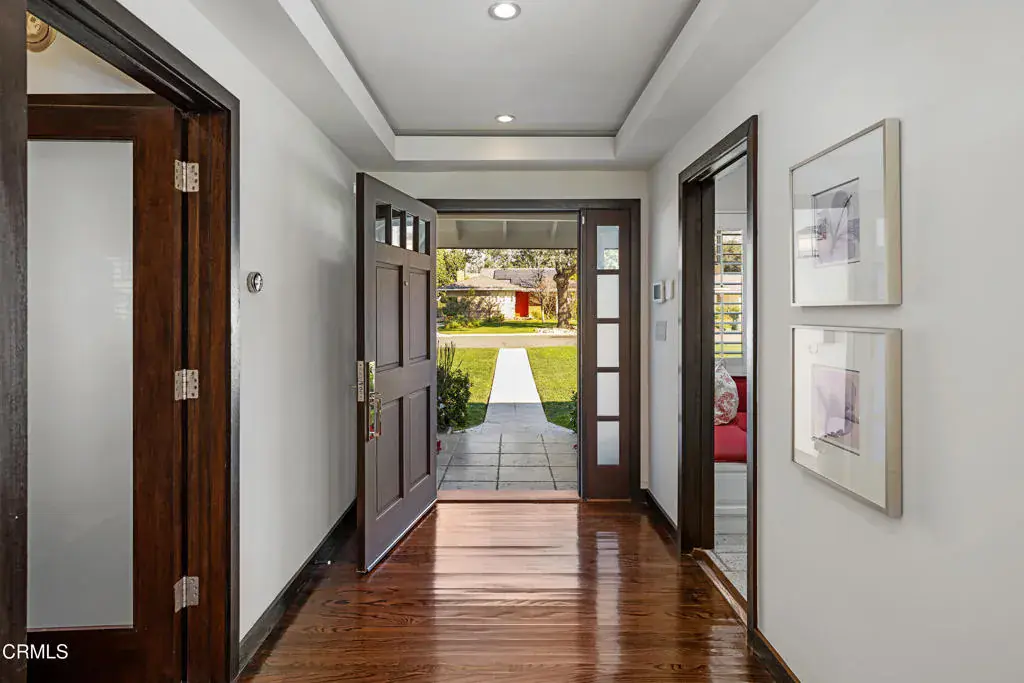 Set at the end of a beautifully manicured cul-de-sac, this reimagined luxury ranch estate delivers a rare blend of refined elegance & resort-caliber entertaining. Every detail has been thoughtfully curated. A professionally landscaped approach & stone pathway lead to a covered porch & into an interior defined by gleaming hardwood floors, Lumintron-controlled lighting & designer finishes throughout. The heart of the home is a statement kitchen where culinary artistry & social gatherings come together. Tile flooring, stone countertops & a dramatic tiled backsplash frame an exceptional suite of appliances, including a Viking Professional 6-burner range, a Sub-Zero refrigerator & freezer. A seamless transition from the kitchen leads to the fully finished garage with cabinetry & a laundry area. Living & dining areas unfold in an open, sophisticated flow accented by custom crown molding with integrated uplighting. A wall of floor-to-ceiling windows & French doors dissolves the boundary between indoors & out, opening to a backyard designed as a private luxury retreat. At its center, a custom-designed pool with integrated lighting & water features complemented by an in-deck spa. A fully equipped outdoor kitchen has a Viking gas grill, warming drawer, beverage refrigerator & gas burner cooktop, making entertaining under the stars easy. An outdoor shower & bamboo privacy hedges complete this secluded oasis. Within the home, private bedroom suites offer flexibility & comfort. One suite enjoys French doors opening to the backyard & a spa-style bath featuring a rain shower & 6 body jets. Two additional bedrooms are connected by a beautifully appointed Jack-and-Jill bath with a dual-sink vanity & a jetted soaking tub with a rain shower & body jets. The primary suite stands as a true sanctuary, expansive & indulgent in scale. There’s a fireplace with a stone surround, a hidden dropdown TV & picture windows framing backyard views. The suite’s spa-inspired bath is luxurious, highlighted by an in-wall saltwater aquarium, a shower with bench seating, a rain shower & multiple body jets. Dual vanities, a private water closet & direct access to the outdoor deck & spa elevate the experience even more. A walk-in closet with built-ins completes the suite. This exceptional Pasadena residence is designed for those who entertain without compromise, where sophisticated interiors, resort-style outdoor living & meticulous craftsmanship converge in a setting of rare privacy & prestige.