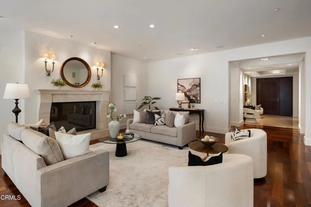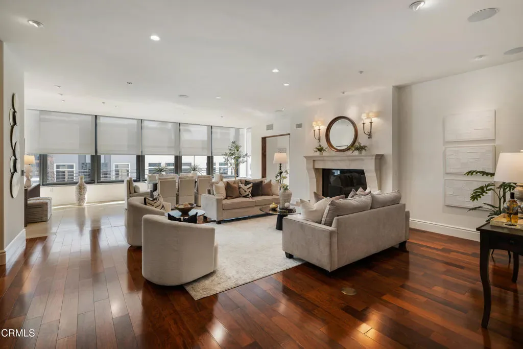 Welcome to The Montana, one of Pasadena’s most prestigious full-service luxury residences, ideally positioned along iconic Colorado Boulevard. This exceptional 3rd-floor corner condo offers refined living, sweeping views over Paseo Colorado & the vibrant cityscape beyond. A grand entry with tray ceilings & refined detailing sets the tone for this expansive open-concept living space. Hardwood floors, recessed lighting & an oversized gas fireplace with a raised stone hearth create a warm, sophisticated setting. A wall of windows fills the room with natural light, framing dynamic city views. A flexible secondary living space with sliding solid wood doors offers the perfect setting for relaxing, a large home office, or an additional dining area. The chef’s kitchen is beautifully appointed, featuring stone countertops, a center island & a suite of high-end appliances, including a Sub-Zero refrigerator, Wolf double ovens, a warming drawer, a microwave & a 6-burner cooktop. Custom cabinetry with soft-close features, built-ins & pantry storage completes the space. The west wing hosts 2 generously sized bedrooms. One offers an ensuite bath with a walk-in shower & custom tilework, while the 2nd enjoys access to a spacious hallway bath & a dedicated laundry area featuring a side-by-side washer & dryer, countertop workspace & cabinetry. Privately situated on the east wing, the primary suite is a true retreat. This expansive sanctuary features high ceilings, recessed lighting & French doors overlooking the Paseo. A remarkable amount of closet space includes cedar-lined wardrobes & a large walk-in closet with built-ins. Dual spa-inspired bathrooms complement the suite, 1 with a jetted soaking tub wrapped in stone & both feature walk-in showers, multiple showerheads & elegant finishes. Built in 2007, The Montana offers a full-service lifestyle with 24-hour concierge, security & a wealth of amenities including a fitness center, surge pool, library lounge & beautifully designed common areas featuring curated art installations. Residents enjoy private, secured parking, additional storage & convenient elevator access. Located in the heart of Pasadena, you will enjoy exceptional views of the world-famous Rose Parade & just moments from Old Town Pasadena, the Playhouse District, South Lake Avenue & directly across from Paseo Colorado, this residence offers unparalleled access to world-class dining, shopping & entertainment, delivering elevated urban living at its finest.