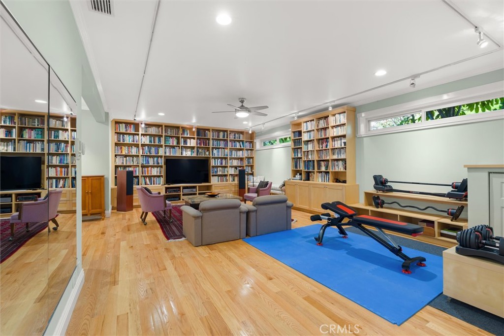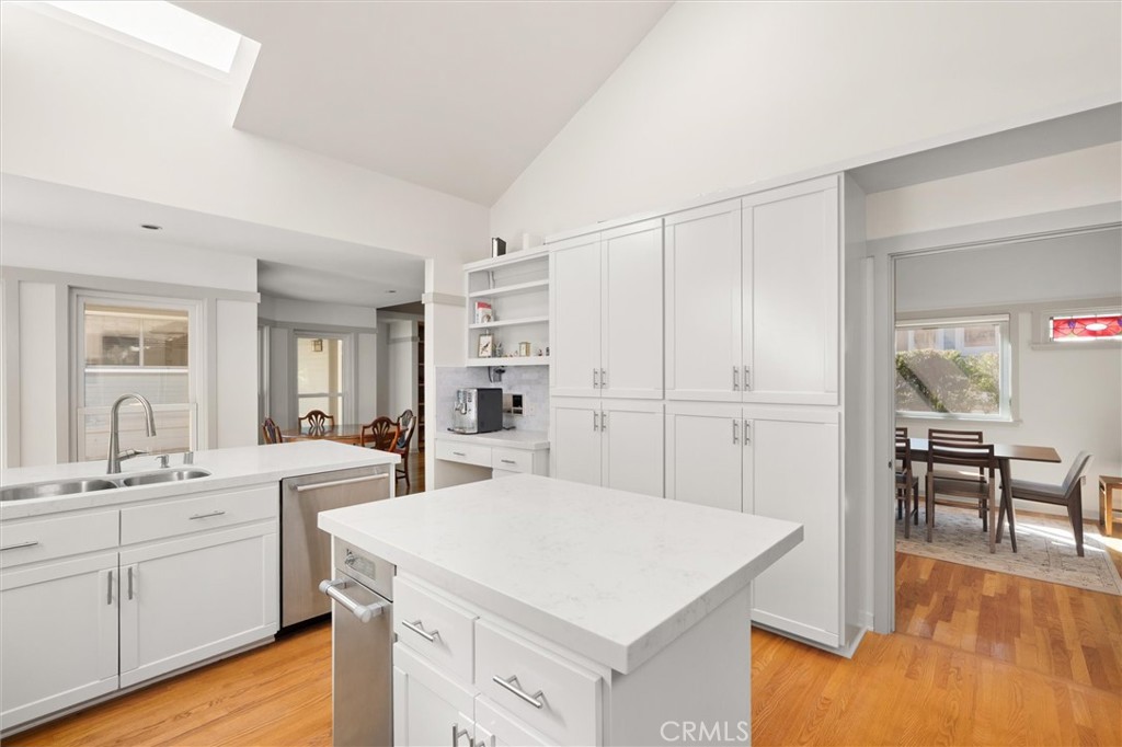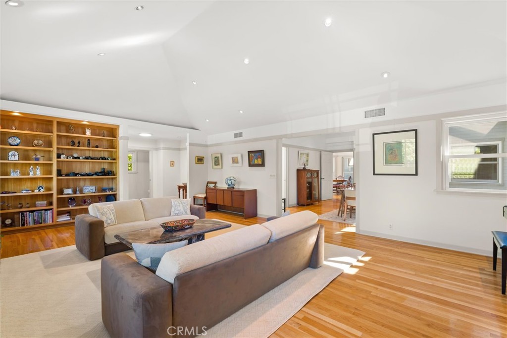 This charming, spacious craftsman style home, situated in one of Pasadena’s most sought after neighborhoods, was built in 1992 by a well-known local developer and real estate broker as his main residence. This high quality home includes all modern amenities. The current owner beautifully renovated the kitchen, three bathrooms, and the lower level. The inviting entry features beautiful hardwood floors, which span both levels. There is a guest bathroom off the entry. The spacious formal living room has a vaulted ceiling, a fireplace with gas starter, built-in bookcase, and recessed lighting. The formal dining room features antique stained glass windows. The renovated gourmet kitchen with skylights and vaulted ceiling includes a Sub-Zero refrigerator/freezer, Wolf convection cooktop & oven, as well as microwave, and lots of storage. The breakfast nook is conveniently located between the kitchen and the family room with a view of the lovely courtyard. The family room with built-in cabinets and bookshelves also has a vaulted ceiling and recessed lighting. The main bedroom suite with vaulted ceiling and skylight offers a ceiling fan, recessed lighting, built-in entertainment cabinet/bookcases, and walk-in closet. The main bathroom has dual sinks and an oversized steam shower. There are two additional family bedrooms with built-in storage, which are serviced by the hallway bathroom. The office/den (could be 4th bedroom) features attractive French doors that open up to a sun deck/patio. The lower level adds exceptional flexibility, with an oversized multi-purpose room perfect for a large home office, creative studio, or recreation space, complete with a dedicated file room. This level also includes a separate laundry room with secured storage and a full bathroom with jacuzzi tub. The two car garage with an automatic opener, offers plenty of cabinets and an EV charger. Other highlights of this home are the dual zone HVAC systems, solar panels, two tankless water heaters, and new desert landscaping with drip irrigation and lights. This extraordinary home offers a rare combination of quality, comfort, and modern convenience in a premier Pasadena location.