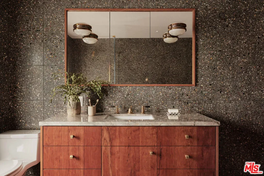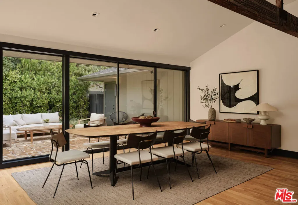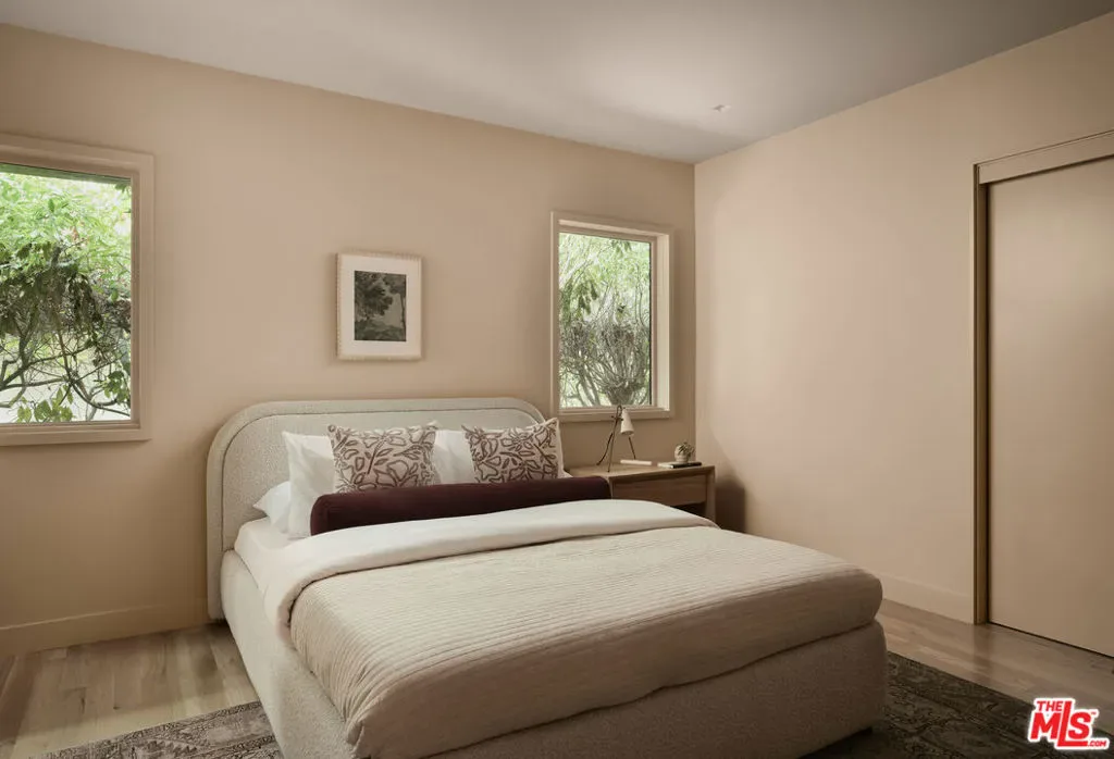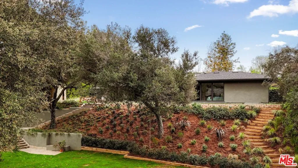 Welcome to this single-story, 4-bedroom, 3.5-bath mid-century residence tucked away on a peaceful cul-de-sac in Pasadena’s prestigious San Rafael neighborhood. Set on a rare 17,325 sq ft parcel abutting San Remo Road, the home offers exceptional privacy, space, and design pedigree in an idyllic setting.Inside, an expansive living and dining area welcomes you with floor-to-ceiling windows and doors that frame views of the lush, landscaped backyard. A striking central fireplace and hearth anchor the space, creating a warm and inviting atmosphere ideal for gathering or relaxing.The remodeled chef’s kitchen features custom cabinetry, quartz countertops, vibrant tile accents, professional-grade stainless-steel appliances, and a stunning center island with seating for eight. Bath and kitchen hardware by Waterworks elevate every detail, while an adjacent pantry with open shelving and abundant storage adds both function and charm. A chic powder room completes the main living area.Down the hall are four spacious bedrooms and three bathrooms all completely renovated with custom Italian terrazzo floors and walls. A serene owner’s suite with private bath, sunken oversized bathtub, direct access to the backyard. Underneath the suite with hidden access is a 500 sq ft bunker encased in cement and steel, complete with walk in vault. The house presents the pinnacle of luxury design and security.Outside, a secret garden unfolds lush, layered, and completely private. A welcoming patio creates seamless indoor-outdoor living, while terraced steps lead to a beautifully landscaped, expansive grassy yard and a vast flat expanse beyond, awaiting your creative vision whether a pool, guest house, or garden retreat.