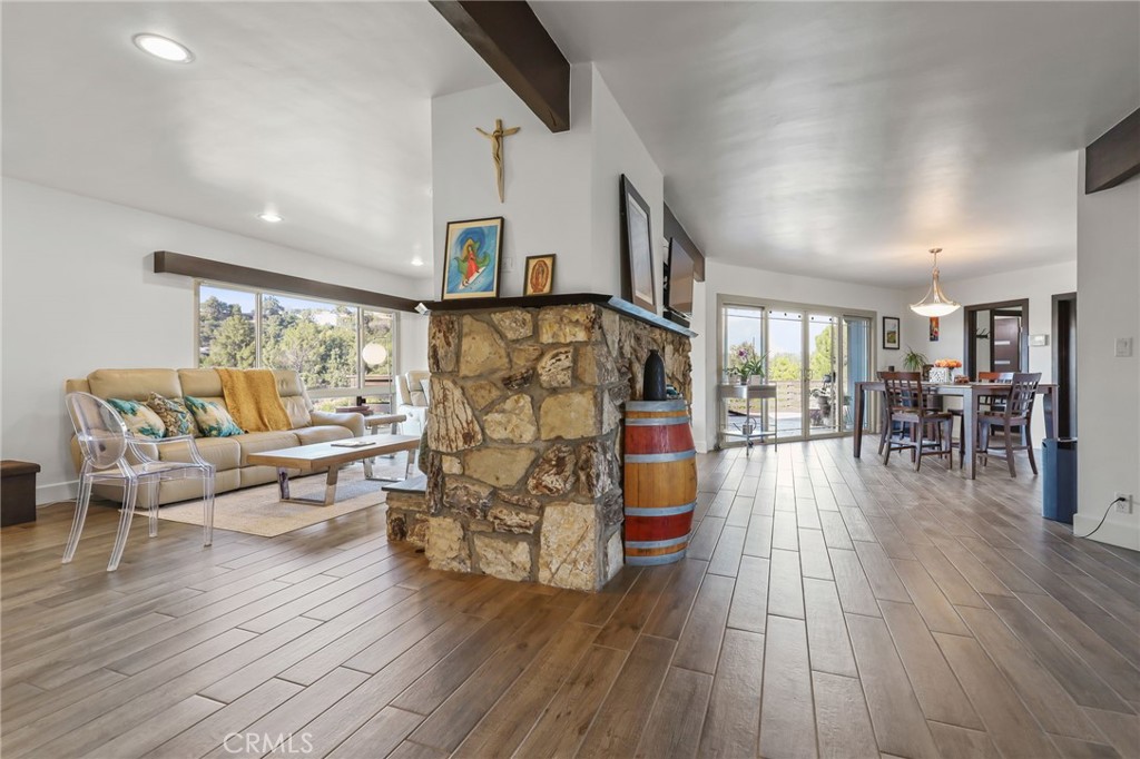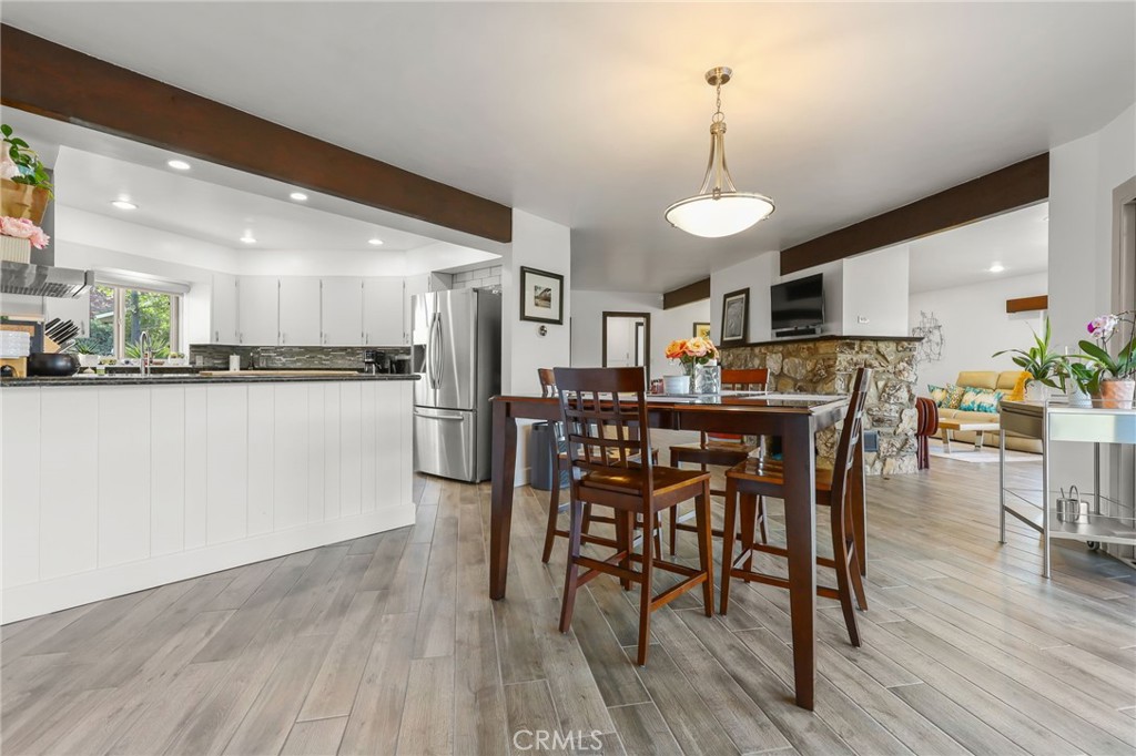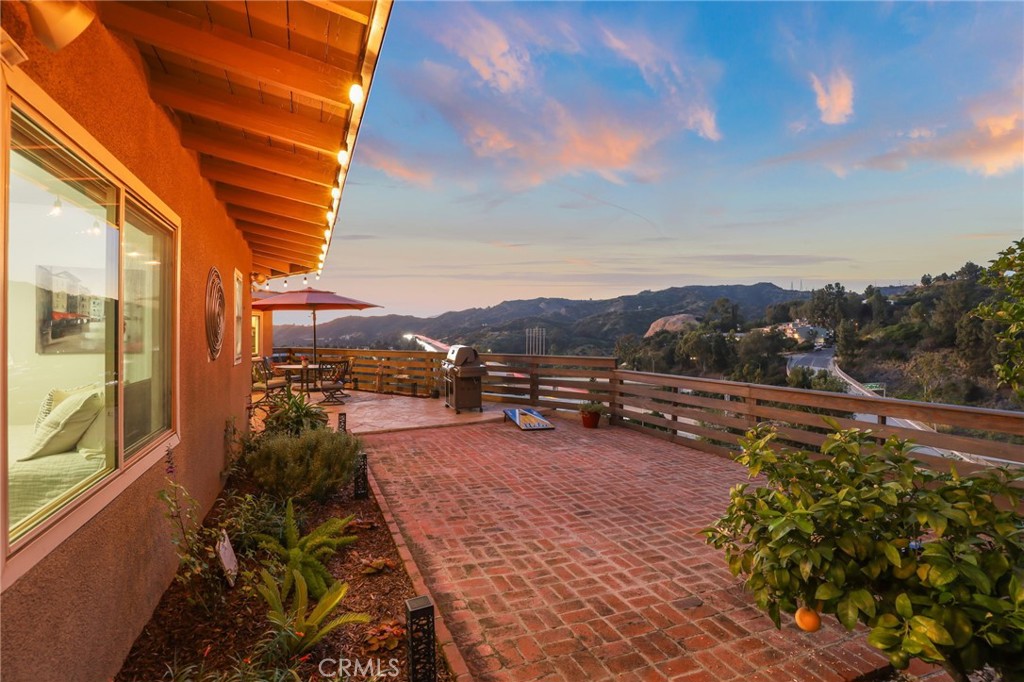 Step outside to the spacious rear deck, featuring custom built new patio railing and Meyer lemon and red grapefruit trees. It’s a perfect setting for entertaining while the city skyline and San Gabriel Mountains offer stunning views and dramatic sunsets.