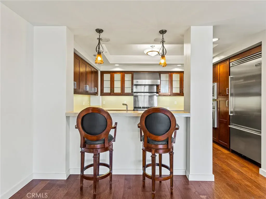 Welcome to luxury living in central Pasadena, located half a block east of Lake Ave, between Del Mar and California, on the second floor with South and West-facing views. This corner residence offers a generous amount of natural light in every room. This unit has a gracious, large floor plan with an open living room/dining area with direct access to both the south and west-facing balconies. There is also a gas-fired fireplace in the living room. The kitchen has an open pass-through countertop to the dining area. The kitchen has all high-end stainless-steel appliances, including a wine refrigerator. The master suite has a good-sized bedroom with direct access to the very large south-facing balcony. The master bathroom is very large with a long counter-top with two sinks, a separate bathtub, and a large glass-enclosed shower. The master suite walk-in closet is big enough to dance in, and that means two people. The 2nd bedroom suite is large enough to fit any size bed. It also has approximately 15 feet of custom-built cabinet space/countertop space with two levels of shelving above. There is also a walk-in closet in this suite. The guest 1/2 bathroom is off the hallway and is not small at all (I have used it with my wheelchair myself). This unit and the entire complex are very handicap-friendly. There are two designated side-by-side parking spaces in the subterranean garage with easy handicap access to the elevator. There is also a designated walk-in storage locker in the garage. Common area amenities include a swimming pool and jacuzzi, a very well-equipped workout room, and meeting room and lounge.