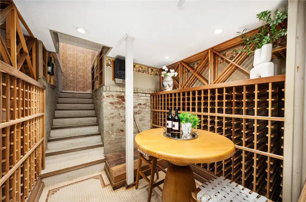 At the heart of the home, the chef’s kitchen is both bright and highly functional. It showcases newly refurbished custom cabinetry, crisp quartz countertops, high-end stainless steel appliances, and a classic farmhouse sink. A traditional butler’s pantry connects seamlessly to the formal dining room, where bay windows and a vintage chandelier provide an elegant backdrop for gatherings. The kitchen opens to a sun-drenched family room, creating an ideal setting for everyday living. A charming basement wine grotto offers an intimate setting to relax and enjoy time with friends.