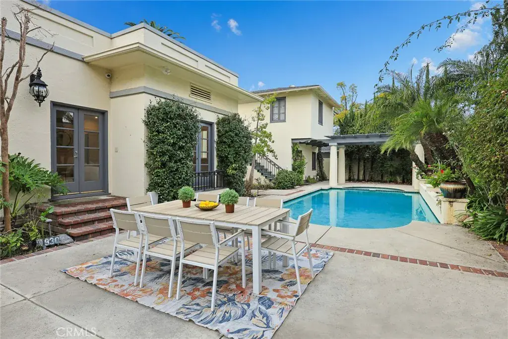 This timeless and stunning Italian Mediterranean Revival estate sits prominently on a generous corner lot in Pasadena’s prestigious Madison Heights neighborhood. From the street, the home’s striking architectural symmetry is framed by a majestic, vine-draped pergola that serves as both a shaded sanctuary and an elegant porte-cochère—an unforgettable first impression.