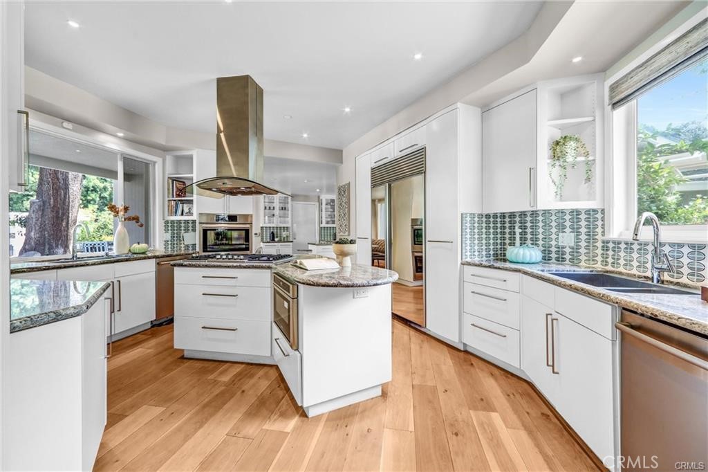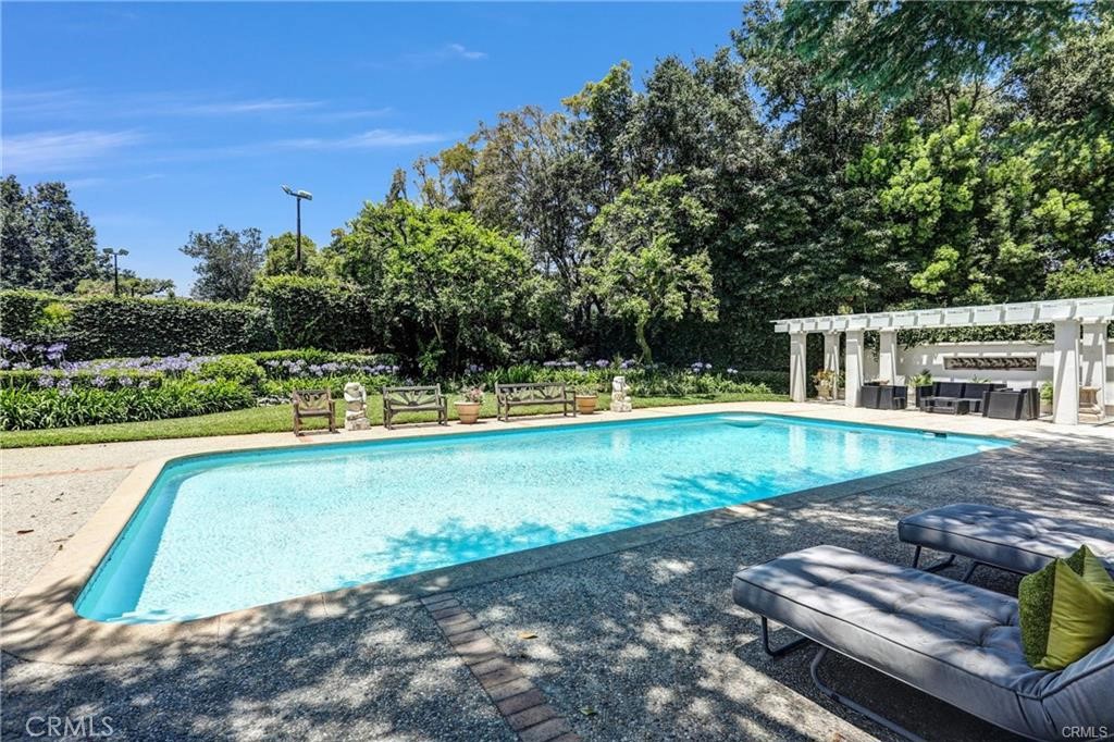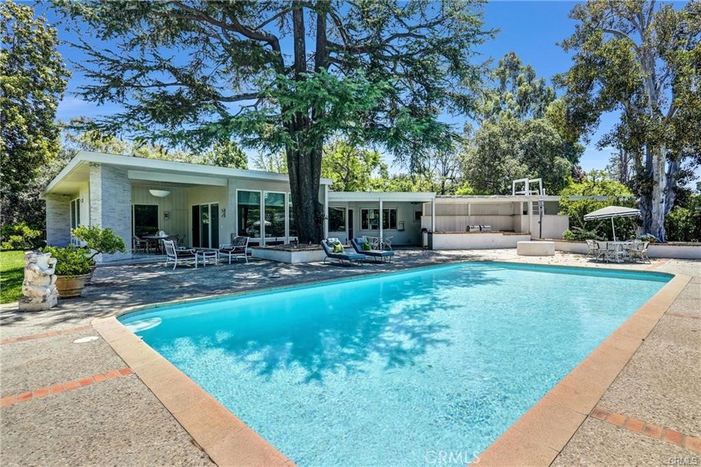 Welcome to this remarkable mid-century modern estate designed by H. Roy Kelley, meticulously remodeled and expanded between 2014 and 2018, this home seamlessly merges iconic architectural charm with modern luxury, offering a sophisticated retreat near the prestigious Langham Hotel. The interior boasts premium finishes and materials, including stone and hardwood flooring, floor-to-ceiling windows, skylights, and a striking fireplace that anchors the living space. The chef’s kitchen is equipped with state-of-the-art appliances, featuring a Sub-Zero refrigerator, Bosch range, Oven, microwave and dishwasher, delivering both style and functionality for culinary enthusiasts. Set on impeccably landscaped grounds, the estate offers a wealth of outdoor amenities. Enjoy a resurfaced tennis court, a sparkling pool, a spa, a built-in BBQ bar, and lush, mature plantings that create a serene environment for relaxation and entertaining. The luxurious primary suite serves as a private sanctuary, complete with a secluded deck and its own in-ground spa, perfect for unwinding after a long day. This one-of-a-kind property represents the pinnacle of mid-century modern design, enhanced with contemporary upgrades and situated in a highly coveted location. Don’t miss the chance to own this architectural gem!