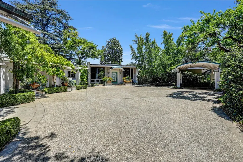 Welcome to this remarkable mid-century modern estate designed by H. Roy Kelley, meticulously remodeled and expanded between 2014 and 2018, this home seamlessly merges iconic architectural charm with modern luxury, offering a sophisticated retreat near the prestigious Langham Hotel. The interior boasts premium finishes and materials, including stone and hardwood flooring, floor-to-ceiling windows, skylights, and a striking fireplace that anchors the living space. The chef’s kitchen is equipped with state-of-the-art appliances, featuring a Sub-Zero refrigerator, Bosch range, Oven, microwave and dishwasher, delivering both style and functionality for culinary enthusiasts. Set on impeccably landscaped grounds, the estate offers a wealth of outdoor amenities. Enjoy a resurfaced tennis court, a sparkling pool, a spa, a built-in BBQ bar, and lush, mature plantings that create a serene environment for relaxation and entertaining. The luxurious primary suite serves as a private sanctuary, complete with a secluded deck and its own in-ground spa, perfect for unwinding after a long day. This one-of-a-kind property represents the pinnacle of mid-century modern design, enhanced with contemporary upgrades and situated in a highly coveted location. Don’t miss the chance to own this architectural gem!