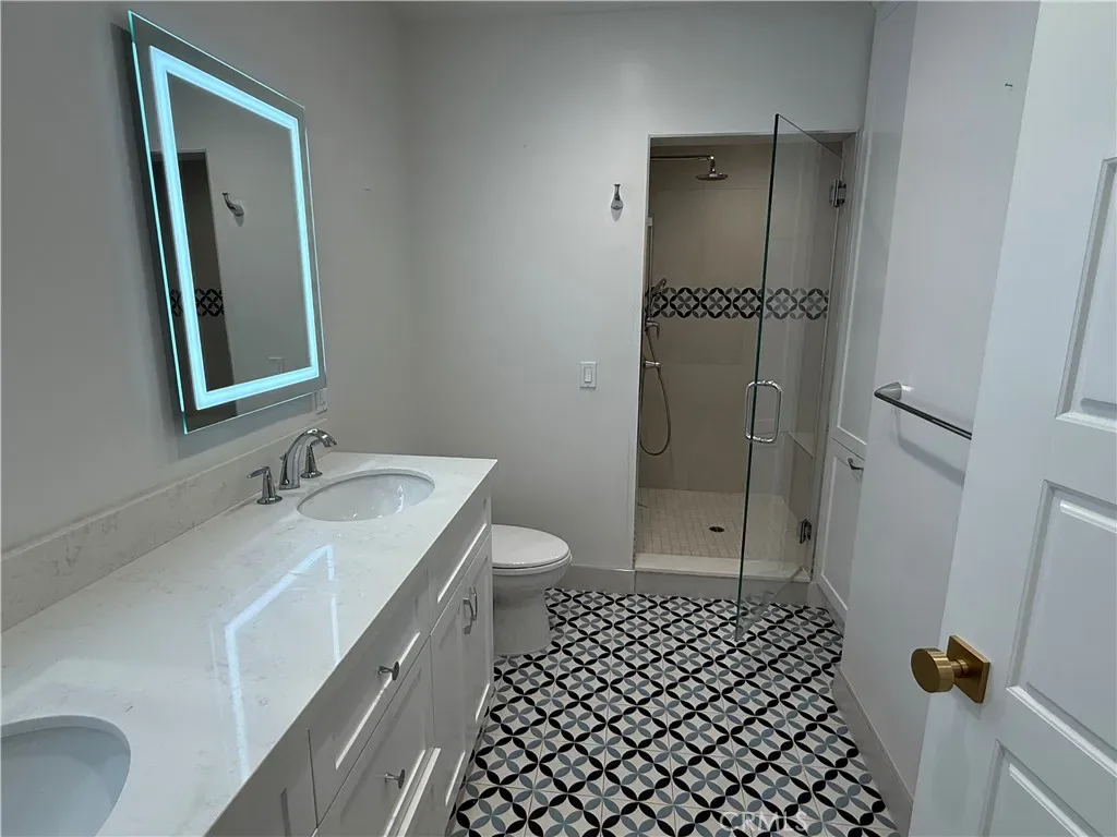 The gourmet cook’s kitchen is a true showpiece, featuring high-end Miele appliances, including a sleek flush-mounted dishwasher. A striking quartzite island anchors the space, perfect for gathering, while a spacious walk-in pantry provides exceptional storage. A designer powder room wrapped in Missoni wallpaper and a secondary bathroom with LED vanity mirrors add bold, modern statements for guests and family alike.