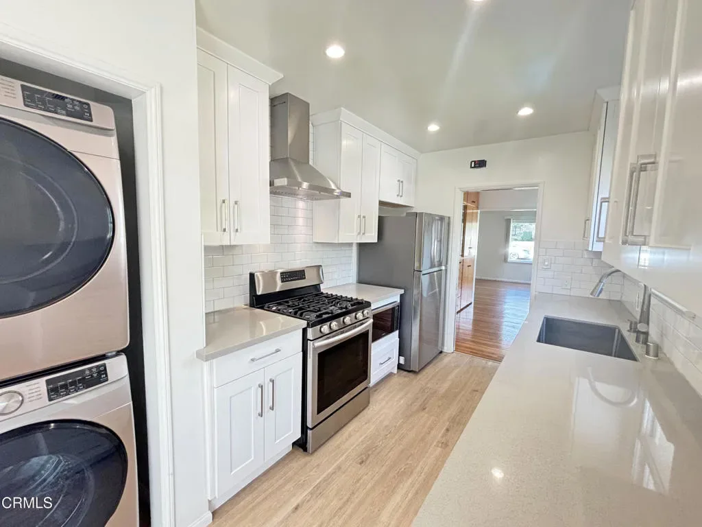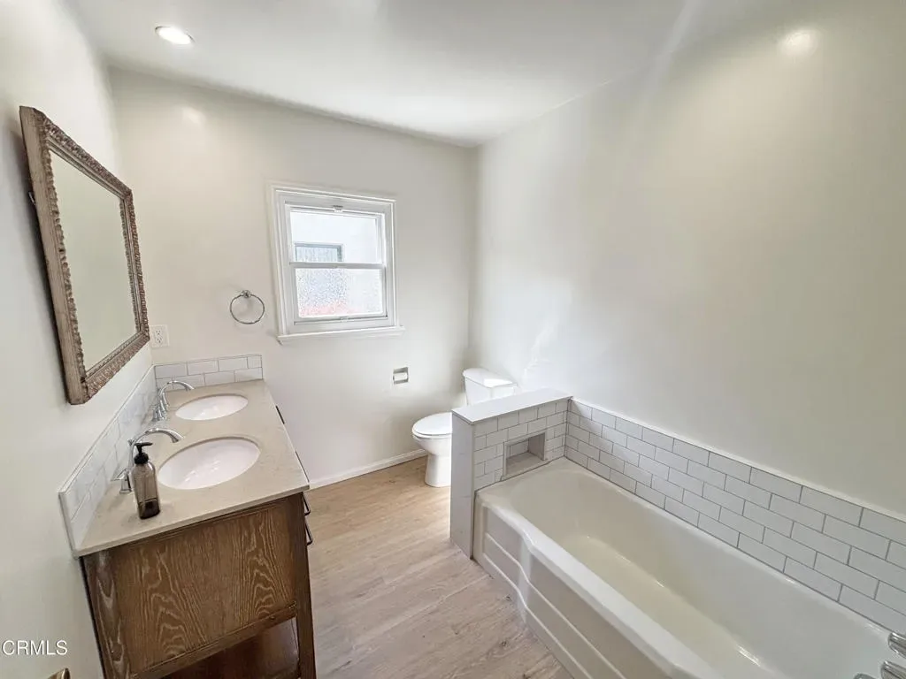 Located on a quiet street, this home is completely updated with hardwood floors, a nicely remodeled kitchen featuring quartz countertops, stainless steel appliances, and a breakfast area. It also offers a formal dining room with built-in china cabinets and a light, bright living room.There are two upgraded bathrooms with frameless shower doors, a tankless water heater, and central air conditioning. The property includes a detached two-car garage on Sinaloa (next to the back house), three bedrooms with ceiling fans, and a newer deck with a patio in the backyard.Walking distance to restaurants and stores–this is a must-see!