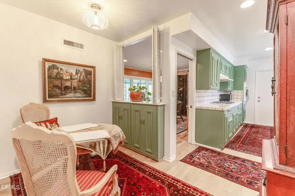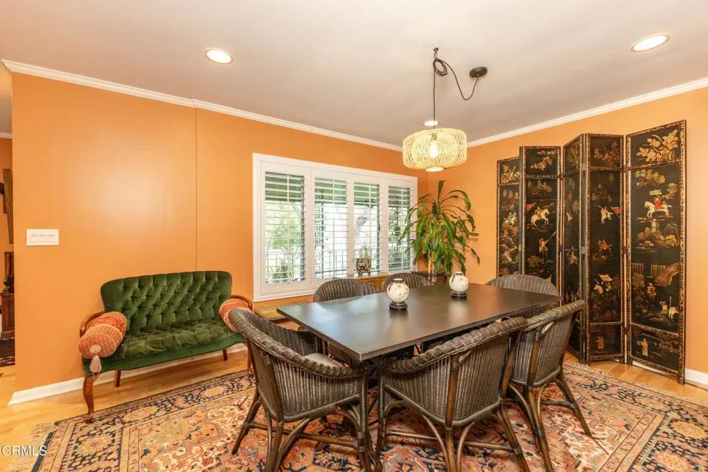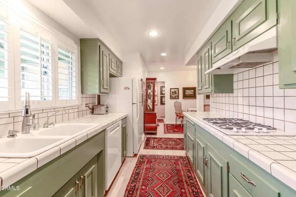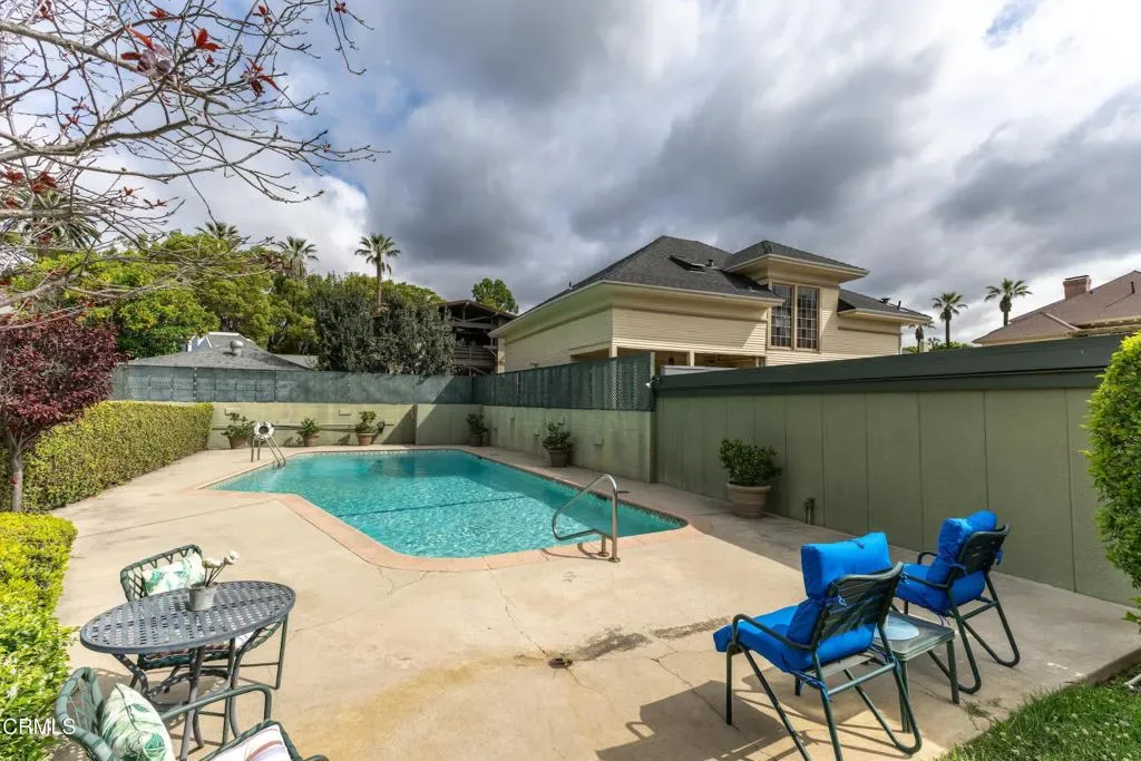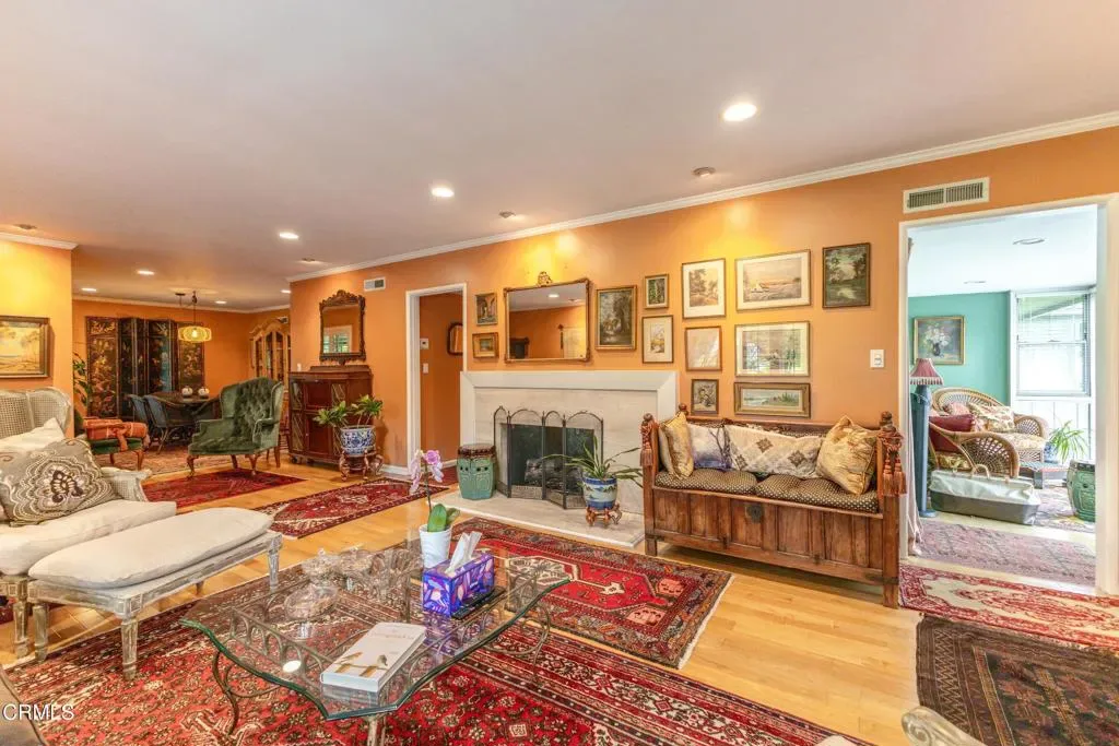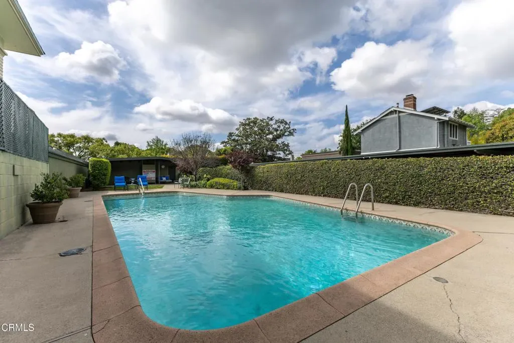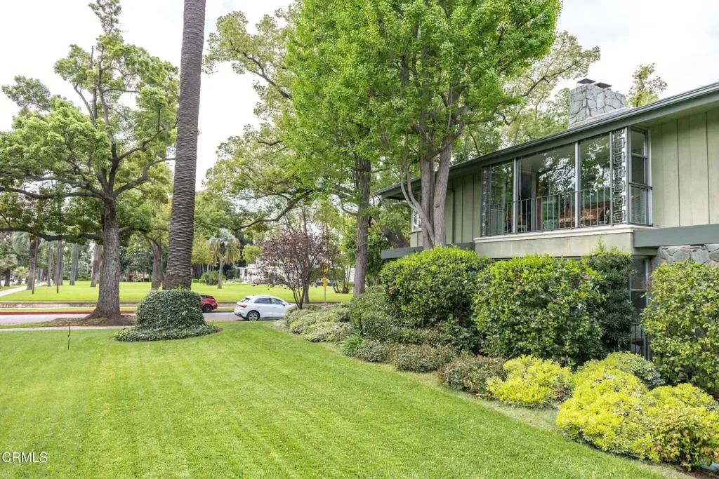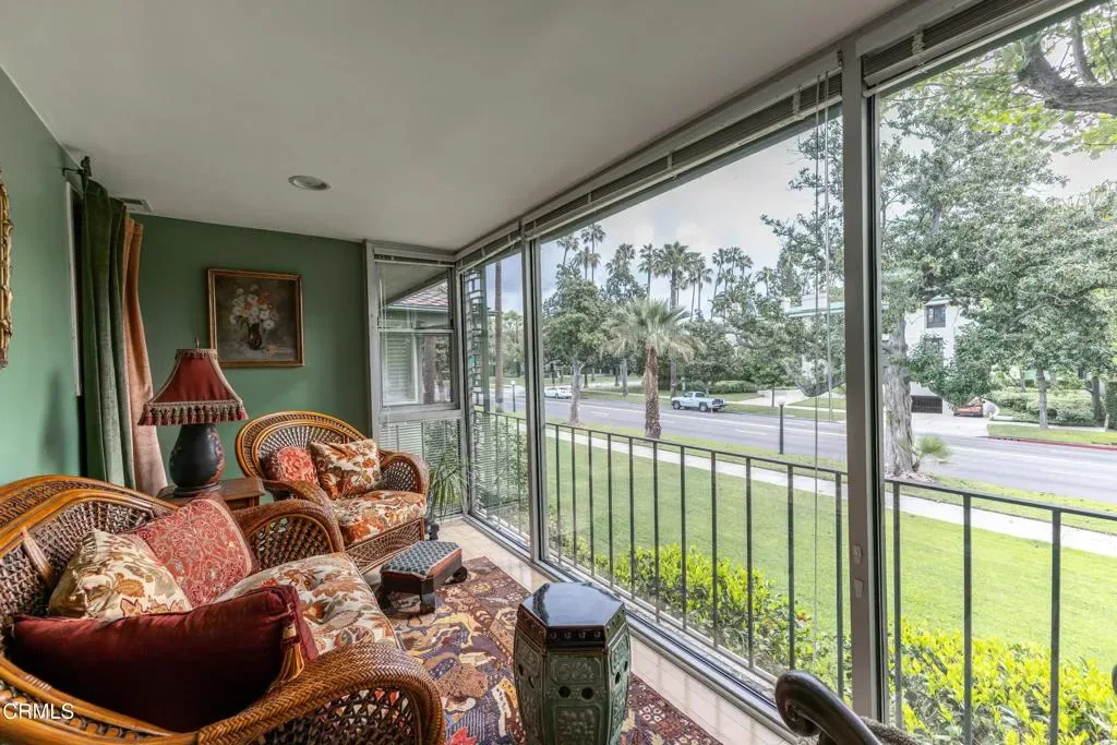 Welcome to The Orange Grove, a designated Historic Landmark garden-style community located in a highly coveted corner location on South Orange Grove Boulevard next to the Wrigley Mansion (the Tournament House). Sparkling association amenities include a pool, well-maintained grounds, and all utilities paid including electric, gas, water, trash, and earthquake insurance. Designed in a Modern Ranch style by J.G. Resh, this spectacular top-floor penthouse condo boasts an open floorplan with 2 bedrooms and 2 baths all on a single level with a one-of-a kind fully enclosed parade viewing room! An inviting entryway welcomes you to a light and bright interior with a spacious living room with fireplace, crown moulding, recessed lighting, and an adjacent dining room and sunroom with lots of windows. Cook in the gourmet kitchen with built-in gas range with hood, tile countertops, breakfast nook, and indoor stackable laundry closet. Other highlights include ample closets throughout for extra storage, central air and heat, and custom window treatments and plantation shutters throughout. Enjoy front row views of the Rose Parade. Convenient parking includes 1 space in a garage and 1 carport with extra storage space and ample guest parking on-site. Close to all that Pasadena has to offer, including shopping, dining, entertainment, and recreation destinations.