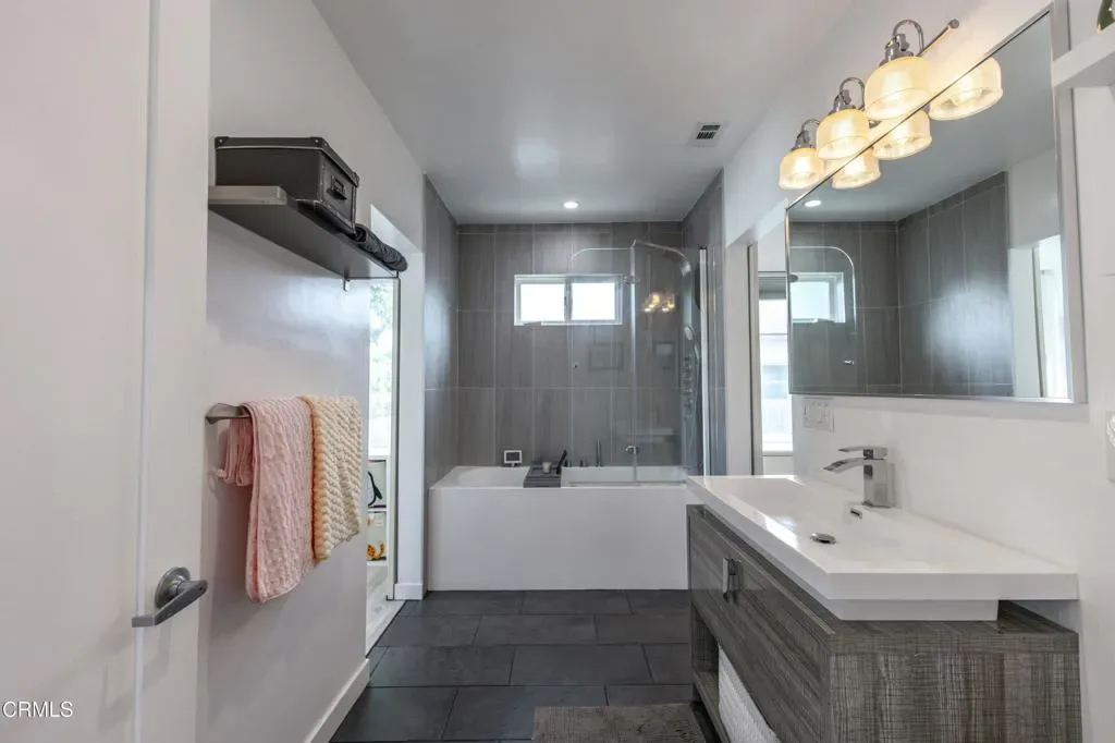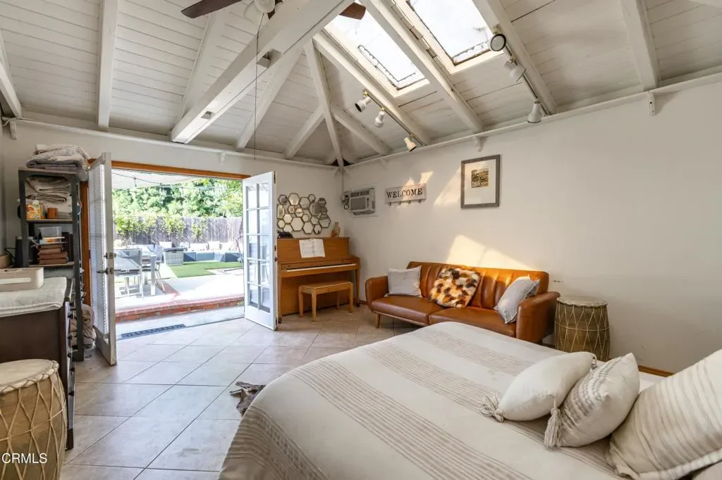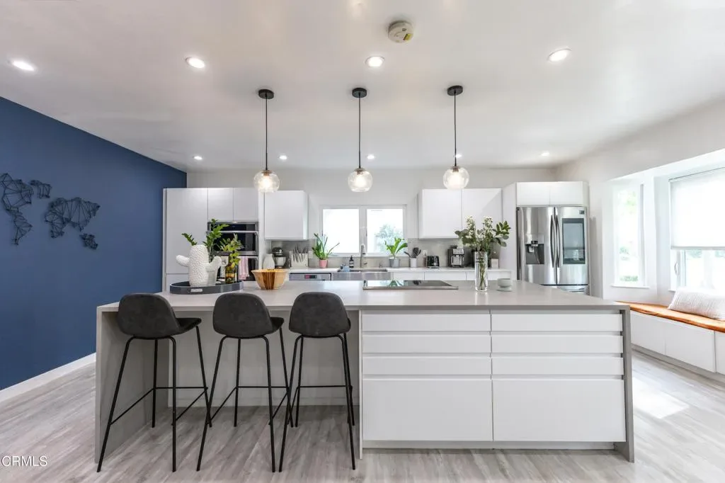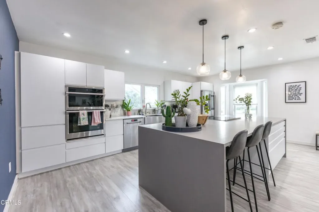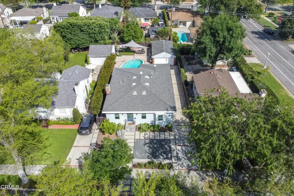 Located in the heart of Daisy Villa, this completely remodeled and expanded single-level home offers an open floor plan with modern finishes throughout. This is not a flipped property and boasts thoughtful and thorough upgrades, including plumbing, electrical, roof, windows and more. This 3-bedroom, 2-bath home measures 1,655 sf, with an additional 228 sf bonus room, for a total of 1,883 sf. The front yard welcomes with large concrete pavers accented by decorative rock. Designer plank flooring runs throughout, complemented by central air and heat, and inside laundry. The modern kitchen features a center island with a breakfast bar, chic white cabinetry, and a stainless steel appliance package, opening to the expansive great room with a fireplace. The master suite offers French doors to the backyard and a spa-like bath with dual vanities and a walk-in shower. Secondary bedrooms are well separated and share a full bath, ideal for kids. The backyard is designed for entertaining with a pool, flat grass area, and a rear 228 sf bonus room studio just behind the detached 2-car garage at the rear, accessed by a long gated driveway, all offering great ADU potential. Convenient access to the 210 freeway and close proximity to shopping, dining, and retail, including Whole Foods Market and Trader Joe’s.