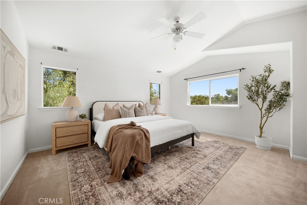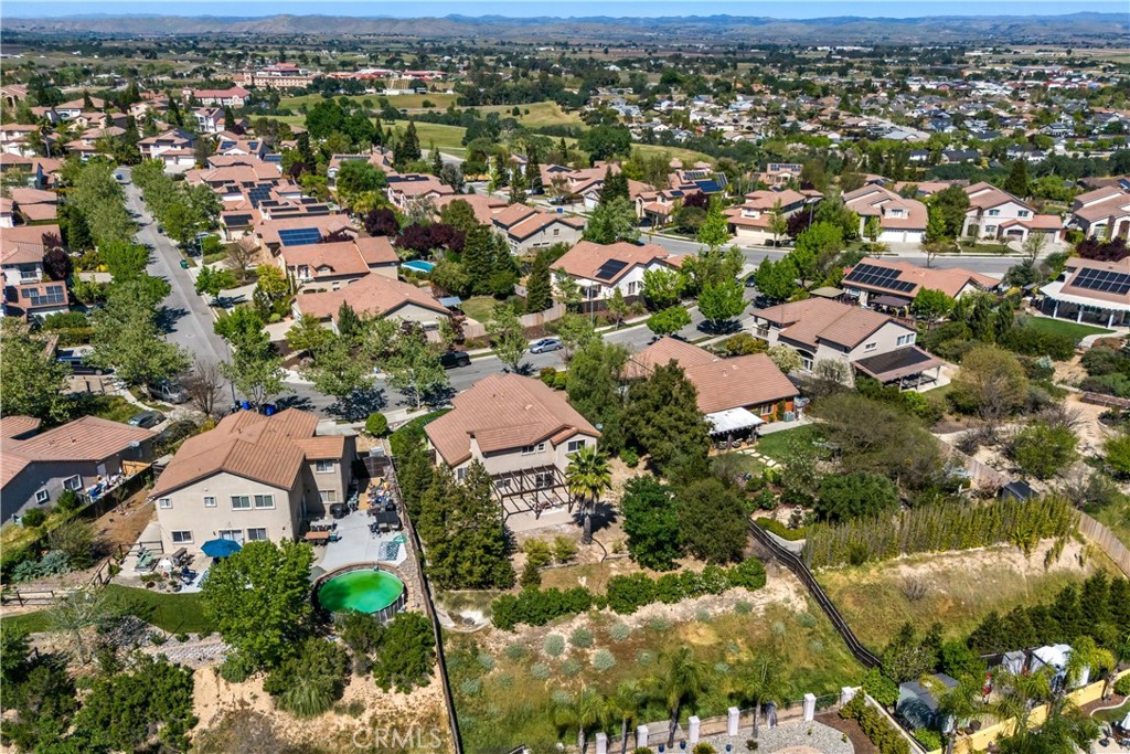 Thoughtfully designed Paso Robles residence offering flexible living spaces and convenient access to downtown restaurants and shops, relaxing weekends exploring wine country, and endless Central Coast recreation opportunities. Known for its scenic beauty, acclaimed dining, and relaxed sophistication, this sought-after community provides an exceptional setting for elevated everyday living. Offering 2,681± sf of thoughtfully designed living space and set on an expansive 15,605± sf parcel, the home features four spacious bedrooms, plus a versatile den, and four full baths. A dramatic entry with an elegant staircase sets the tone, opening to a formal living room highlighted by soaring cathedral ceilings and a dining room adorned with an ornate hanging fixture—an inviting setting for hosting memorable gatherings. The kitchen is designed for everyday living and entertaining, featuring Corian counters, double ovens, gas cooktop, dishwasher, and microwave. A generous walk-in pantry, breakfast bar, and double sink positioned beneath a sunny window enhance both form and function. Just beyond, the comfortable family room centers around a gas fireplace with a raised hearth and mantel, creating a warm and welcoming atmosphere. A double-door den offers great flexibility—ideal for a home office, fitness space, or a quiet retreat. The primary suite serves as a private sanctuary, featuring a double-door entry, vaulted ceilings, and a walk-in closet. The en-suite bath includes a dual-sink vanity, a seated makeup area, a relaxing soaking tub, and a separate shower. An additional en-suite bedroom with its own full bath offers added flexibility for multi-generational living or extended stays, creating a comfortable and private space. Two secondary bedrooms share a well-appointed full bath, offering plenty of room for family or guests. The outdoor spaces offer both room to expand and endless potential. A lush front lawn and inviting front porch create a welcoming setting, while the expansive rear yard provides a sense of privacy and openness with mature redwoods, palm and olive trees, and views of rolling hills—offering a versatile backdrop for outdoor entertaining, gardening, or simply enjoying Paso Robles’ beautiful evenings. Additional highlights include a laundry room with storage cabinetry and a sink, a three-car garage offering added flexibility—ideal for storing recreational equipment or creating a home gym or workshop—and dual-zone AC for year-round comfort.