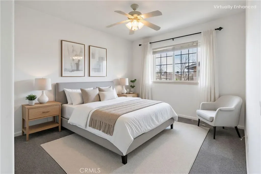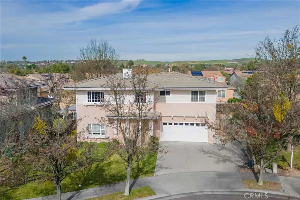 Pristine Paso Robles Home with Main-Level Primary Suite! Welcome to this beautifully maintained residence offering 2,030 square feet of thoughtfully designed living space. This 3-bedroom home includes a versatile bonus/office room and 2.5 baths, ideal for both comfortable living and flexible work-from-home needs. The primary bedroom is conveniently located on the main floor and features double closets, dual sinks, a separate shower and a relaxing soaking tub. The spacious living and dining areas showcase high ceilings and an electric fireplace, creating an inviting and open atmosphere. Some of the upgrades include fresh interior paint throughout, new carpet in the upstairs bedrooms, and engineered hardwood flooring. The updated kitchen is equipped with quartz countertops and a breakfast bar, perfect for casual dining and entertaining. Abundant storage is found throughout the home, including multiple linen and storage cabinets. Additional highlights include a two-car garage with extra driveway parking, a water softener, and serene, beautifully landscaped yards with multiple patio areas and convenient side yard storage area. This immaculate property is truly move-in ready and represents an exceptional opportunity in Paso Robles. Disclaimer, virtual staging has been added to some of the photos.