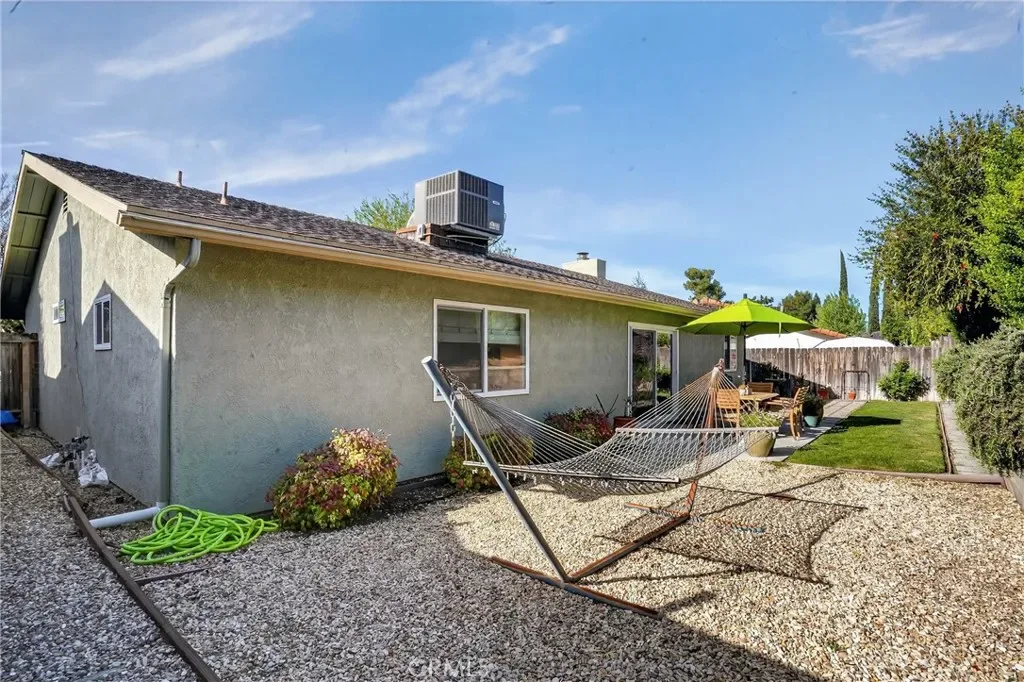 Located on a quiet circle drive, 615 Palomino welcomes you with attractive curb appeal and thoughtfully designed front yard landscaping that sets the tone from the moment you arrive. This inviting home offers a comfortable layout with well-appointed, renovated spaces and seamless indoor outdoor living. The spacious living room serves as a central gathering area, featuring a sliding glass door that opens to the backyard, creating an easy connection for everyday living and entertaining. The kitchen has been tastefully renovated with granite countertops, white cabinetry, and stainless steel appliances, offering both style and functionality. Just beyond, the dining room is anchored by a cozy fireplace and includes its own slider to the backyard, enhancing the natural flow of the home. The primary suite provides a relaxing retreat with a beautifully updated en suite bathroom showcasing quartz countertops, updated lighting, hexagonal tile flooring, and a glass enclosed shower finished with classic subway tile. Two additional guest bedrooms offer comfortable accommodations, while the hall bathroom mirrors the same thoughtful updates with quartz counters, updated lighting, hex tile flooring, and a tub shower combination. Follow the tour outdoors to a backyard designed for both relaxation and enjoyment. Garden boxes invite you to grow your own produce, while the lawn, patio, paver areas, and a peaceful hammock space create multiple areas to unwind or entertain. Additional features include a two car garage and leased solar for added efficiency. Conveniently located less than 10 minutes from downtown Paso Robles, you can enjoy local restaurants, wine bars, and community events, with shopping and schools just 5 minutes away. Imagine settling into this well cared for home and enjoying the ease of Central Coast living, schedule your showing today.