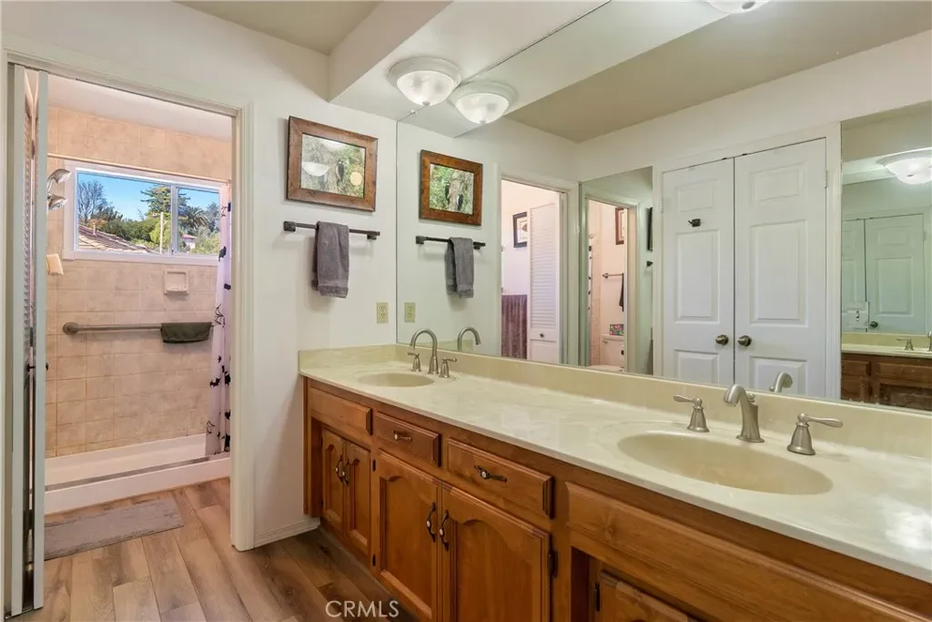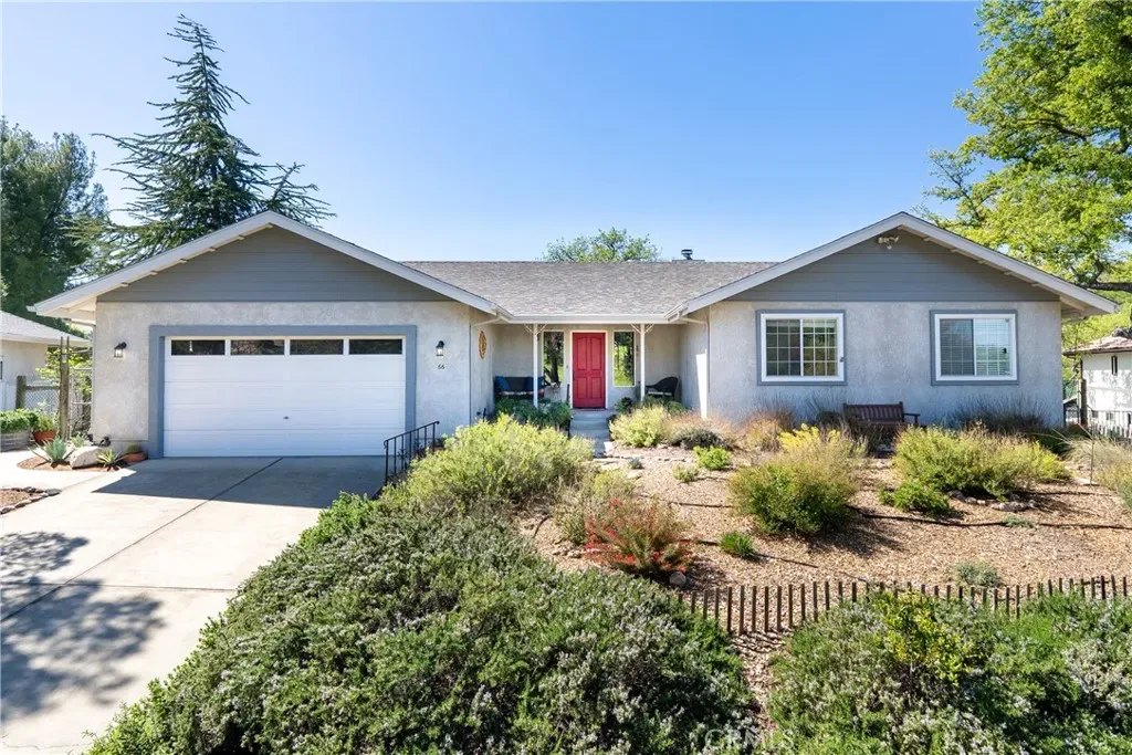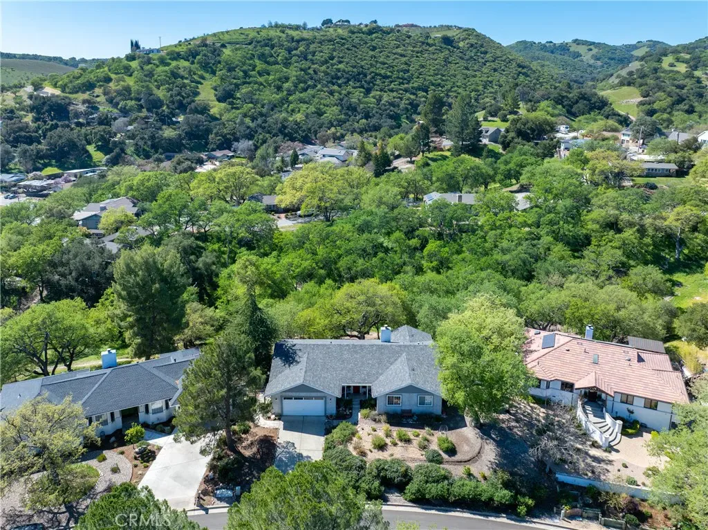 Welcome to 66 Terrace Hill Dr – a single-level retreat tucked among the oaks in the sought-after hills of West Paso Robles, just minutes from Downtown Paso Robles, the Paso Robles Event Center, & the renowned Paso Robles Wine Country. Set on a generous 17,000± sq ft lot, this 3 bedroom, 2 bathroom, 1,841± sq ft home blends nature’s views with access to dining, tasting rooms, shopping & Hwy 101. From the moment you step through the front door, the home makes an impression-large picture windows draw your eye through the great room to the oak-studded backyard, creating a feeling of living in a tree-house retreat. The open floor plan & single-level layout make everyday living appear comfortable & accessible, while natural light & views bring the outdoors in. The great room serves as the heart of the home, featuring a fireplace with floor-to-ceiling river rock surround & a tongue-&-groove ceiling accent that adds warmth & character. Luxury vinyl plank flooring flows through the dining area, kitchen & laundry for durability and style. The kitchen offers ample counter space, abundant cabinetry & breakfast bar seating, for casual mornings or entertaining. A bay window at the kitchen sink overlooks the oak trees & backyard, adding a serene touch to daily routines. Nearby, the indoor laundry room includes a versatile closet that can double as pantry storage. The open dining area connects seamlessly to outdoor living with a sliding door to the rear deck— useful for indoor-outdoor entertaining. 2 guest bedrooms enjoy views toward the front yard & hillside beyond. The primary suite is designed as a private retreat with two walk-in closets, a spacious bedroom plus direct deck access through its own sliding door. The ensuite bath features dual vanities spanning wall-to-wall cabinetry, plus a separate room with shower & commode for privacy. In the rear yard, the elevated deck is a true highlight—nestled among mature oaks with room for outdoor dining, seating areas & a dedicated BBQ space. It’s a setting to unwind, entertain, or simply enjoy Paso’s natural beauty. Additional features include fenced grounds, functional side yards with multiple use options. With the home situated on a raised foundation, there is a dry storage room beneath the rear deck & primary suite— offering potential for seasonal items, tools, or hobby space. Here is an opportunity to enjoy views & nature while remaining close to Downtown Paso Robles, wine country & local amenities.