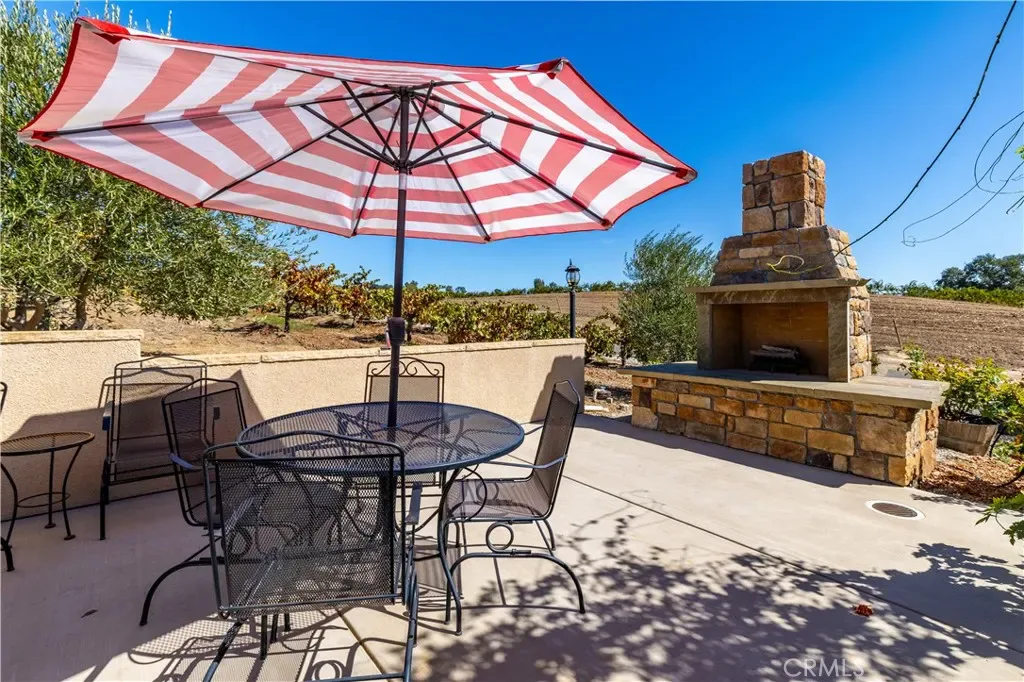 The main residence offers 2,736 sq. ft. of elegant yet comfortable living space, with 3 bedrooms, 3 bathrooms, and a spacious 3-car garage. The gourmet kitchen — a dream for any cook — flows easily into the open living and outdoor spaces, making entertaining effortless. Step outside to a sparkling pool and a covered patio complete with a grand fireplace and cooling fans — the perfect spot to unwind as the sun dips below the vines.