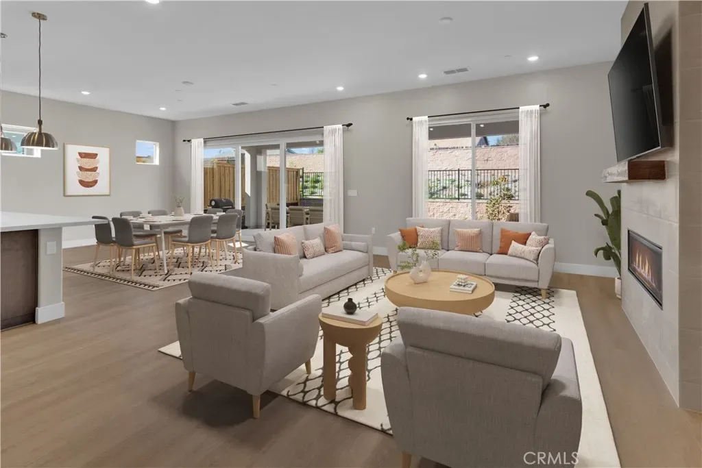 Immerse yourself in the relaxed elegance of Paso Robles wine country with this beautifully designed Liberty II home while visiting Nevina, a 55+ community. The gourmet kitchen is a true centerpiece, featuring upgraded quartz countertops, an elegant tile backsplash, premium KitchenAid stainless steel appliances, and sophisticated smoked gray stained cabinetry. A dramatic rolling wall at the dining room extends the living space to a covered patio with gas BBQ stub, while an interior fireplace with mantel adds warmth and ambiance, creating the perfect setting for both entertaining and quiet evenings. The private primary suite offers a serene retreat, highlighted by tall windows and a spa-inspired bath with quartz counters, a tiled shower with frameless glass, and Shea Shower. Designer details elevate the home throughout, including luxury vinyl plank flooring in main living areas, plush carpet in bedrooms, upgraded tile baths, two-tone interior paint, and 5½” baseboards. With laundry cabinetry and sink, brushed nickel accents, and energy-efficient LED lighting, this move-in ready residence combines style, comfort, and modern function. Nevina™—a Trilogy® Boutique Community™ offers more than a home—it’s a lifestyle thoughtfully designed for those seeking connection, wellness, and enjoyment. With an additional membership, residents can experience exclusive resort-style amenities, a planned vibrant clubhouse, and spaces that bring neighbors together. All of this is complemented by Paso Robles’ signature charm—rolling vineyards, culinary treasures, and breathtaking scenery—making wine country living truly unforgettable.