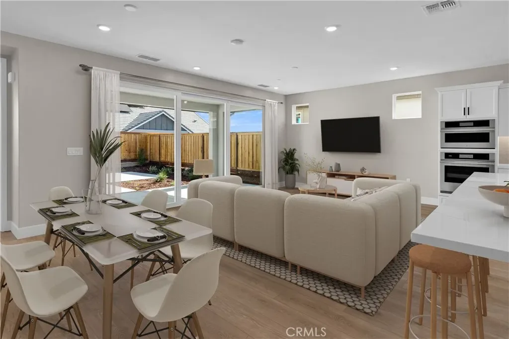 Welcome to Nevina, a 55+ community, where refined design meets the laid-back elegance of Paso Robles wine country. This thoughtfully crafted Connect II home features a gourmet kitchen with upgraded quartz countertops, a designer tile backsplash, premium KitchenAid stainless steel appliances, and classic Swiss Coffee painted cabinetry. The expansive great room seamlessly connects to the outdoors through a dramatic rolling wall of glass, leading to a covered patio with gas BBQ stub—ideal for both intimate evenings and lively gatherings.