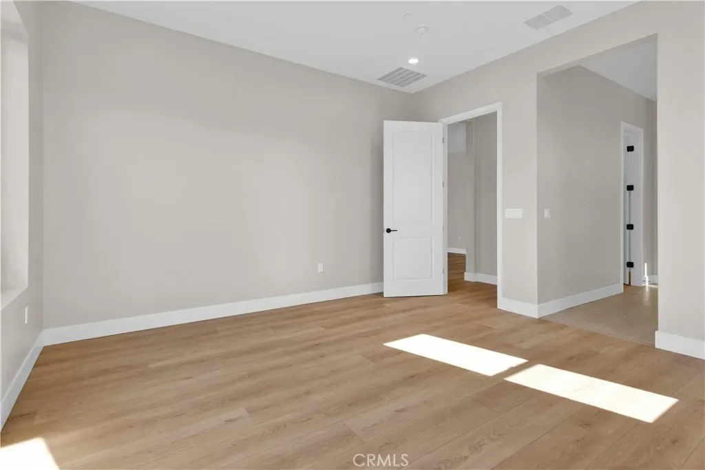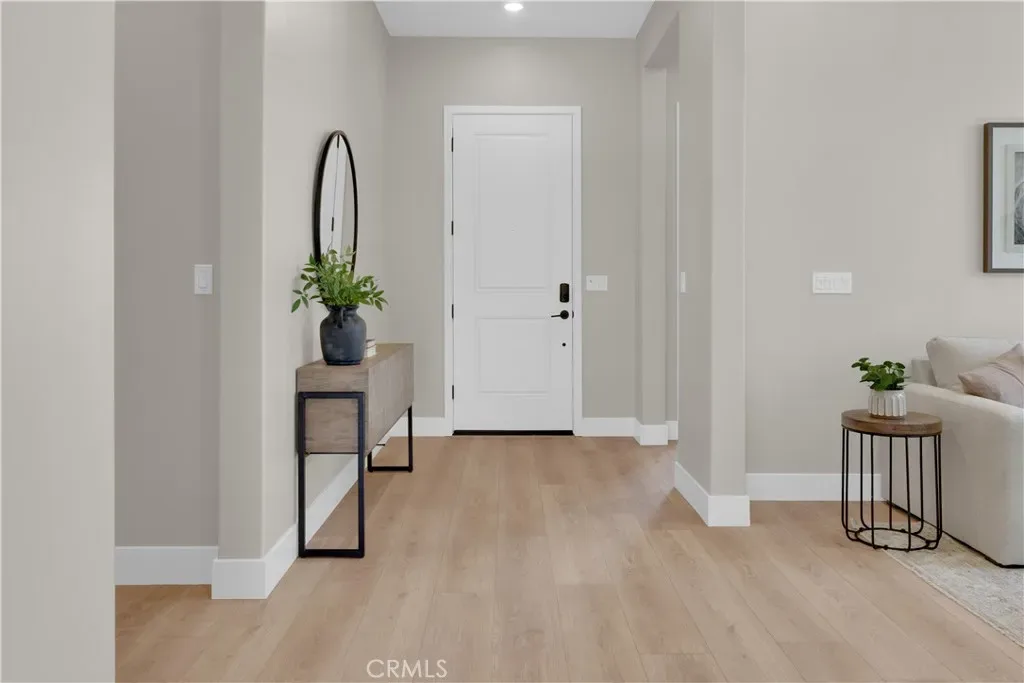 The private primary suite is designed as a serene retreat, with tall windows, quartz counters, a tiled shower with frameless glass, and Shea Shower. Every finish reflects thoughtful design, from luxury vinyl plank flooring in the main living areas and bedrooms to upgraded tile baths, two-tone interior paint, and 5½” baseboards. With laundry cabinetry and sink, bold black accents, and LED lighting throughout, this move-in ready home blends style, comfort, and function.