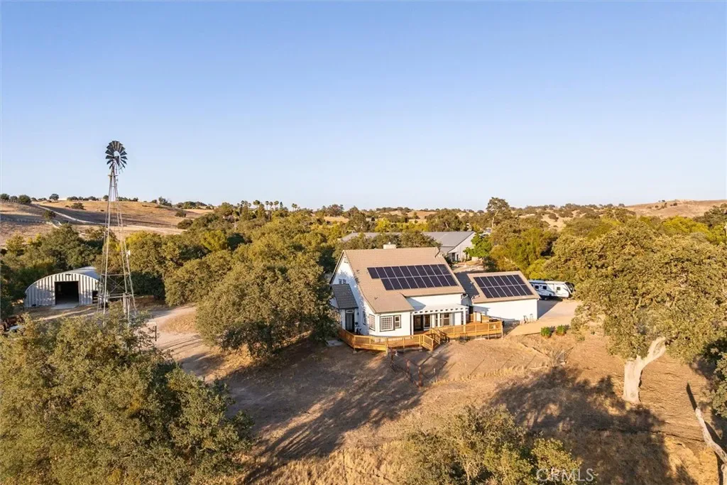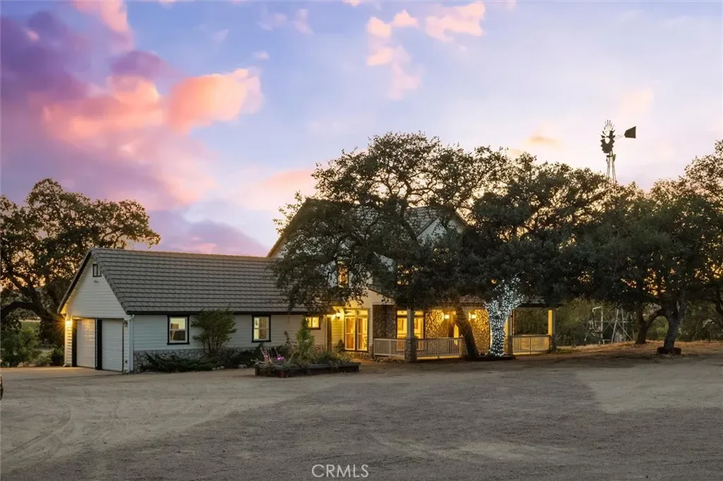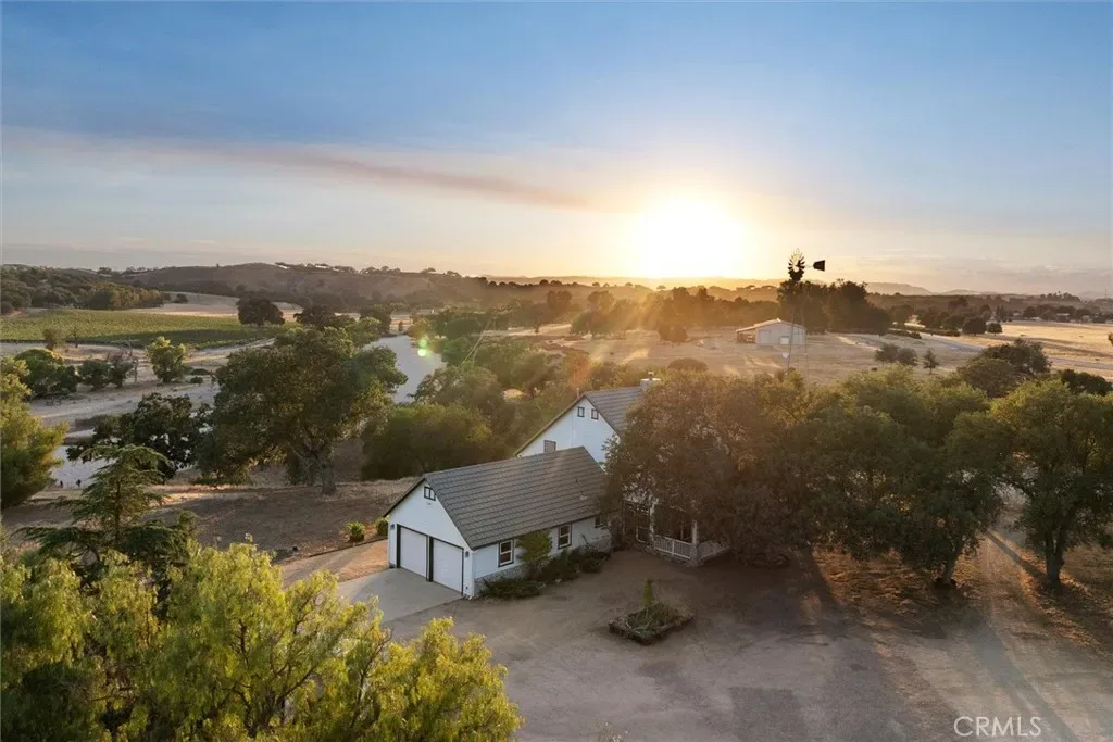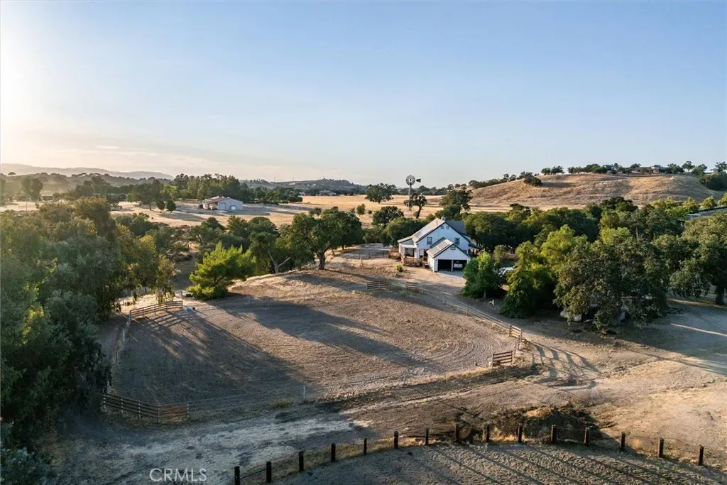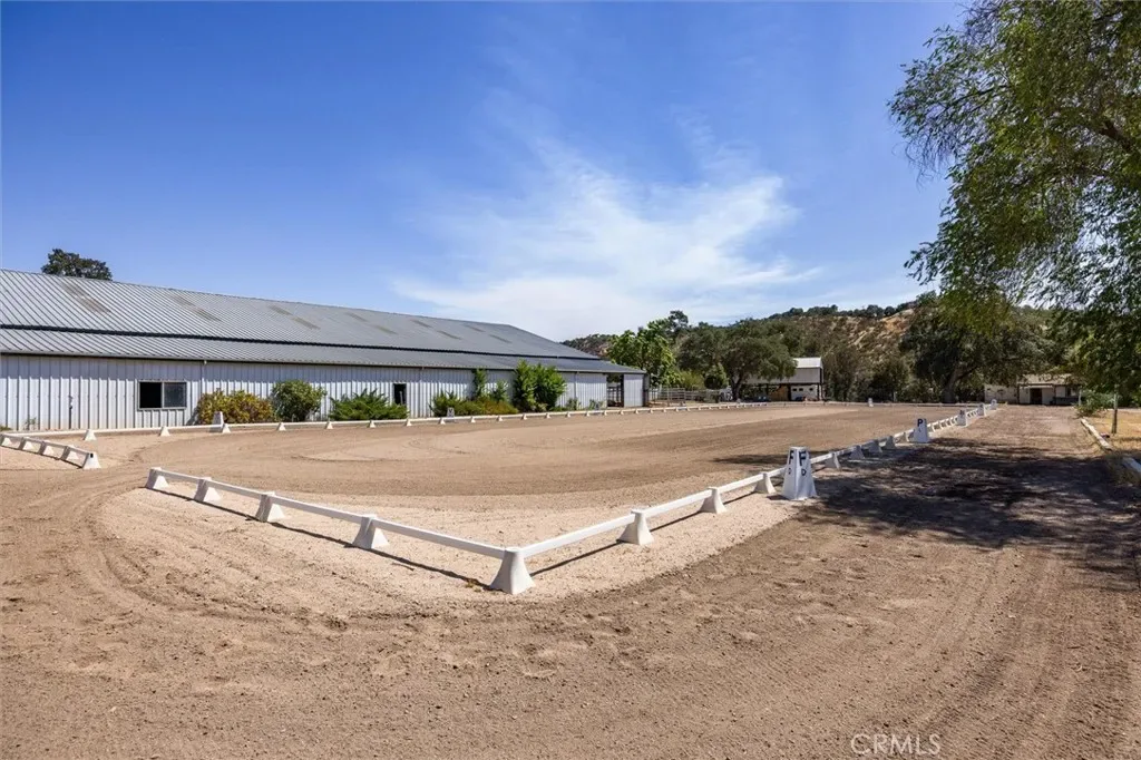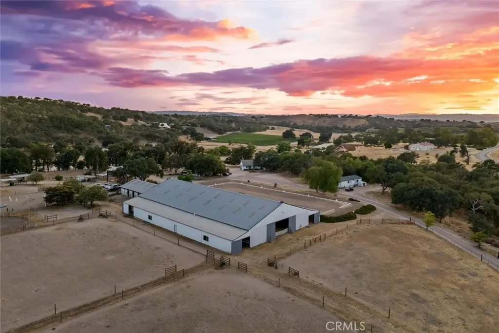 Welcome to Moon Valley Farm — a rare 20-acre riverfront equestrian estate, formerly known as the Clyde Kennedy Center, offering the ultimate blend of privacy, functionality, and breathtaking scenery. This one-of-a-kind property is perfectly designed for both horse enthusiasts and those seeking a serene country lifestyle, while still being just minutes from town. The centerpiece is a 12-stall Barnmaster barn complete with matted stalls, a spacious 30’ x 16’ tack room, foaling stall, washer/dryer, storage rooms with an upstairs loft, and full utilities including water and power. Amenities abound with a 70’ x 140’ indoor arena with sprinklers and lighting—perfect for year-round training or events—and a 100’ x 200’ outdoor arena. Seven pastures (two irrigated) and eight additional corrals provide ample turnout space with horse-safe fencing, many with shelters. The custom main home, built in 2001, spans approximately 2750 sq ft per with 3 bedrooms plus an office (potential 4th bedroom) and 3 bathrooms. Highlights include cathedral ceilings in the entry and living room, 9-foot ceilings throughout, a floor-to-ceiling river rock wood-burning fireplace, a split red cedar ceiling at the covered front porch, granite countertops, and French doors leading to a deck with sweeping Huer Huero River views. Owned solar (2019), an extra-deep two-car garage, and thoughtful finishes throughout complete this inviting residence. For guests or a workers residence, a charming 500± sq ft studio offers a full kitchen and bath plus an exterior half bath for boarders. A 1987 manufactured home adds even more flexibility with 3 bedrooms, 2 baths, and separate metering at both accessory homes. Enjoy the land’s unique features: direct riverbed access for riding, a seasonal pond, windmill, irrigated pastures, garden box, and mature oak, apricot and pistachio trees. With a hay barn, large shop with roll-up doors, 220 power, the 90 GPM ag well plus a domestic well, this property is set up for both comfort and convenience. Whether you’re envisioning a thriving equestrian business, a private retreat, or both—this stunning property offers endless possibilities in a truly magical setting. Don’t miss the chance to make Moon Valley Farm your own.