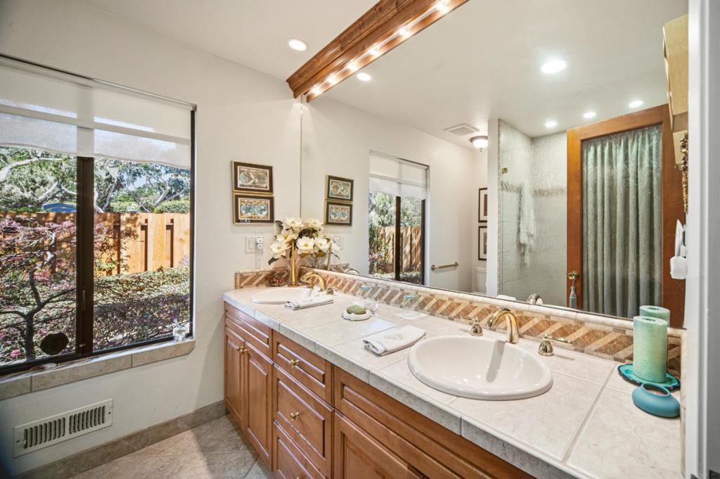 Very custom single level floor plan on a landscaped corner lot in the peaceful Country Club area of Pebble Beach. This is a meticulously maintained 2500 sq ft 3 bed, 2.5 bath home, plus oversized 2 car garage with a fenced rear area for the pooch! Tastefully remodeled throughout. Large airy rooms, formal dining room, formal living room with fireplace, many windows and high ceilings. Separate large den with built-ins adjacent to remodeled eat in kitchen and a laundry room. Primary bedroom is huge and has a retreat feel with lots of closets and an airy remodeled bath. Many windows and sliding doors through the home to access pretty grounds. Don’t miss this tasteful home. (Most work suggested on inspections has been done! Meticulous!)