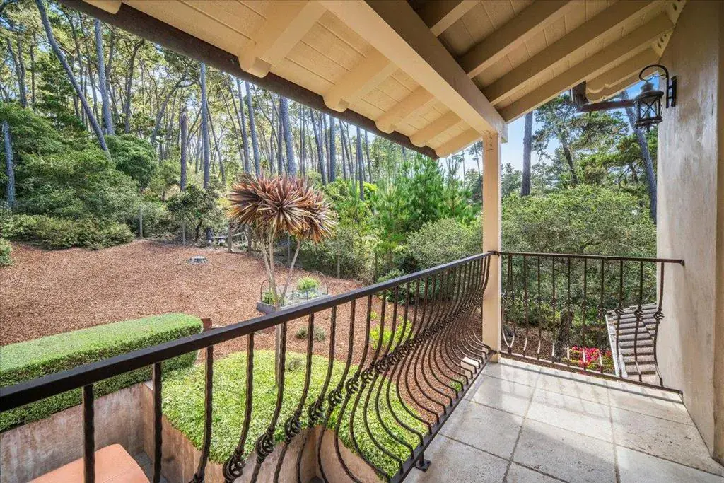Tucked behind a private gate, nestled on an oversized 1/3 acre lot, this exquisite Spanish Mediterranean retreat offers timeless design, refined craftsmanship and unmatched privacy. This spacious home is surrounded by a meticulously landscaped yard with scenic patios, balconies and a hot tub over looking the peaceful garden making it ideal for relaxing or entertaining in elegance and comfort. The property sits adjacent to several hundred acres of forested preserve with walking and riding trails offering the best of outdoor opportunities. This home features 4 spacious bedrooms and 3.5 bathrooms, including two elegant primary suites, one on the main level, both with spa inspired bathrooms and private outdoor access. Special perks such as a whole house generator, car lift and safe pet in and out access enhance the livability. Ocean peeks are visible throughout the home, where large windows and graceful balconies welcome natural light and coastal breezes. Located moments from Monterey Peninsula Country Club, world-class golf and the scenic 17 Mile Drive as well as shopping, this property offers both seclusion and convenience in the heart of Pebble Beach.