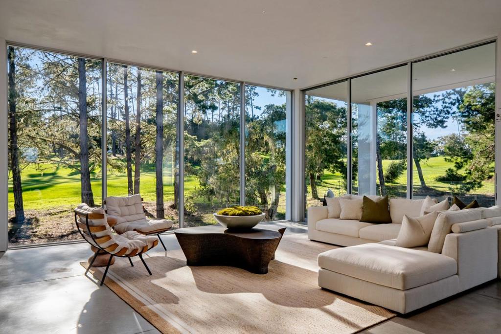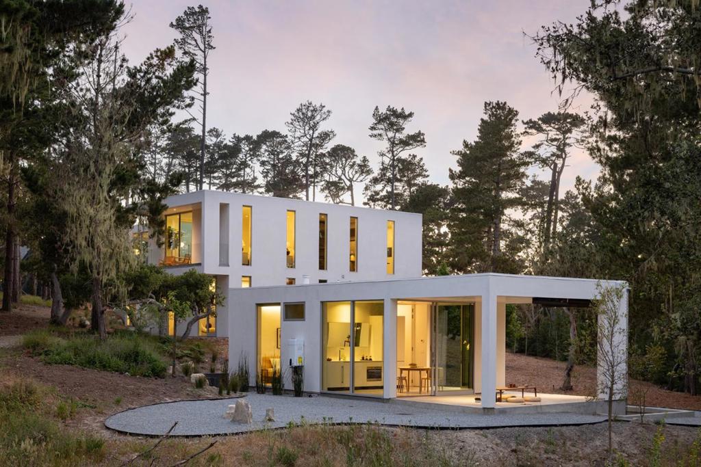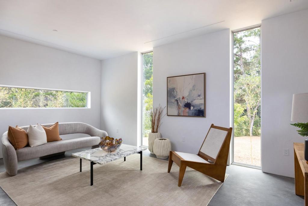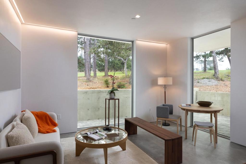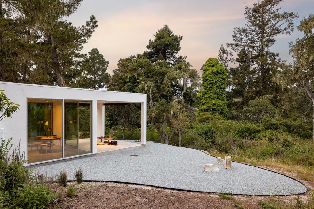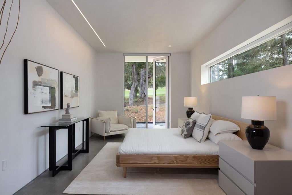 With sweeping views of Spyglass Hills 11th fairway and filtered ocean vistas, the Waterbridge House is an extraordinary Scandinavian-Japanese minimalist estate. This newly constructed compound is comprised of the stunning main house, a private ADU, and a Tea House (Guest House) floating on water. The striking architecture embraces intentional simplicity, blending natural elements with modern form. Two architectural axes, interior and exterior, guide you through spaces that reveal and conceal, including the “Waterbridge,” a glazed walkway over a tranquil pond. The sculptural Cloud Steps lead to a light-filled interior where polished concrete floors, Western floor-to-ceiling windows, Italian concealed Infinity doors, and Poliform cabinetry define quiet luxury. Sustainability meets sophistication with triple-glazed windows, radiant heat, and an automated energy recovery system. From Sub-Zero, Wolf, and Miele appliances to Italian Flos lighting and Simply White plaster walls, every detail reflects enduring craftsmanship and environmental mindfulness. Located in the heart of Pebble Beach near The Lodge and by the Spyglass Club House, Waterbridge House is a half mile to the beach and a short drive from all the wonderful amenities of Carmel, Big Sur, and the Monterey Peninsula.