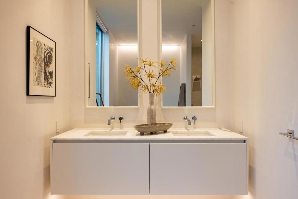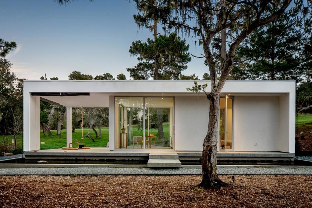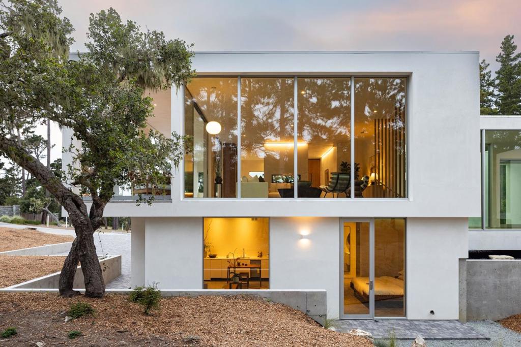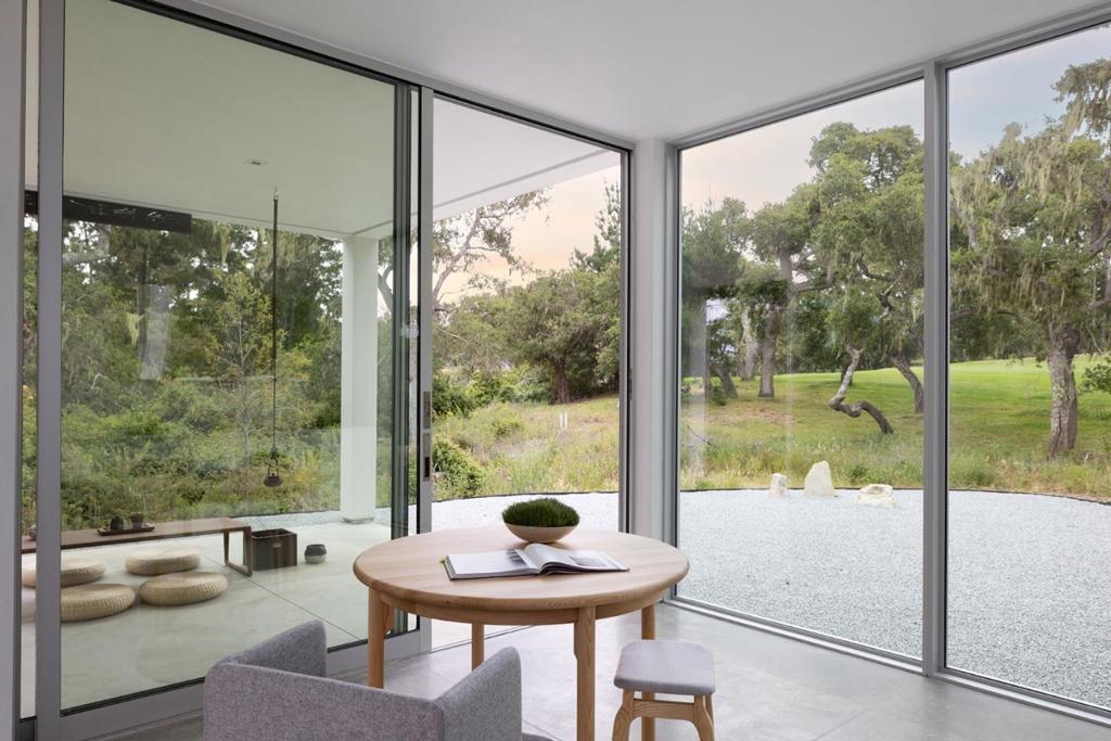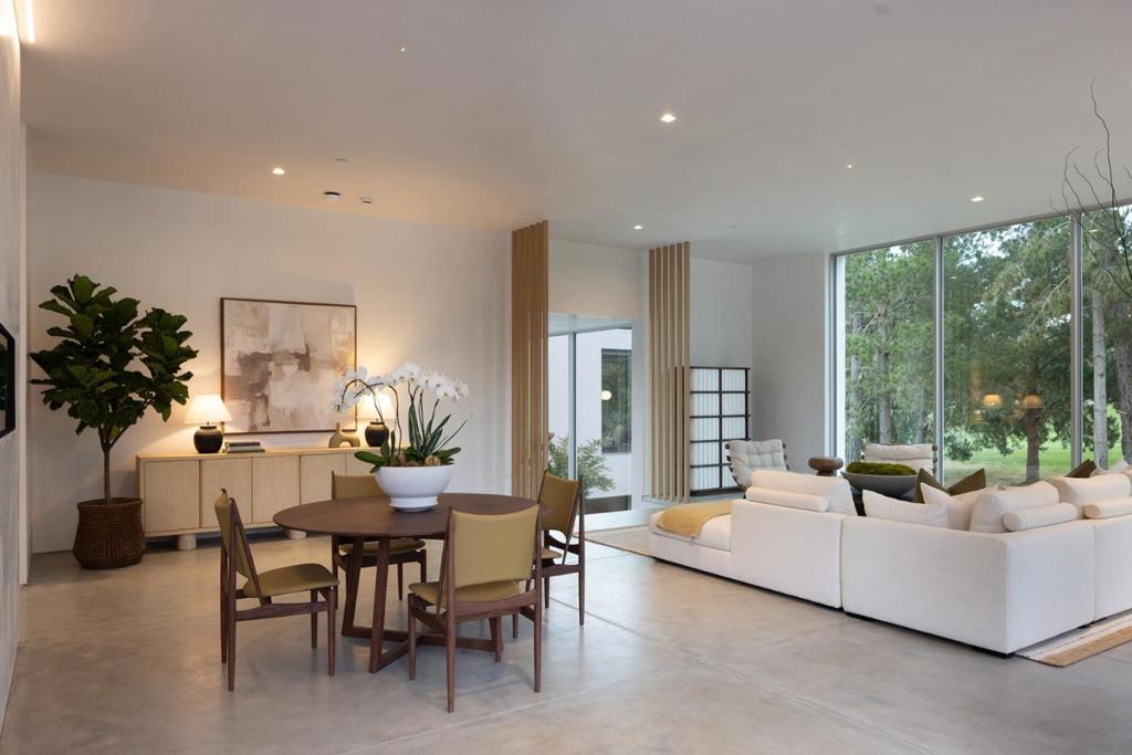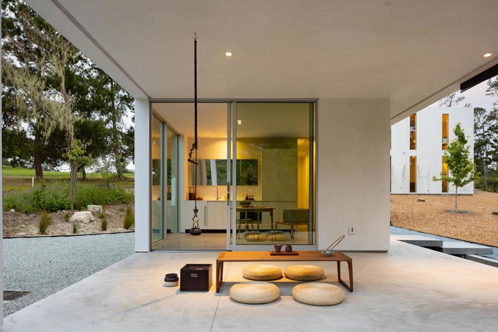 With sweeping views of Spyglass Hills 11th fairway and filtered ocean vistas, the Waterbridge House is an extraordinary Scandinavian-Japanese minimalist estate. This newly constructed compound is comprised of the stunning main house, a private ADU, and a Tea House (Guest House) floating on water. The striking architecture embraces intentional simplicity, blending natural elements with modern form. Two architectural axes, interior and exterior, guide you through spaces that reveal and conceal, including the “Waterbridge,” a glazed walkway over a tranquil pond. The sculptural Cloud Steps lead to a light-filled interior where polished concrete floors, Western floor-to-ceiling windows, Italian concealed Infinity doors, and Poliform cabinetry define quiet luxury. Sustainability meets sophistication with triple-glazed windows, radiant heat, and an automated energy recovery system. From Sub-Zero, Wolf, and Miele appliances to Italian Flos lighting and Simply White plaster walls, every detail reflects enduring craftsmanship and environmental mindfulness. Located in the heart of Pebble Beach near The Lodge and by the Spyglass Club House, Waterbridge House is a half mile to the beach and a short drive from all the wonderful amenities of Carmel, Big Sur, and the Monterey Peninsula.