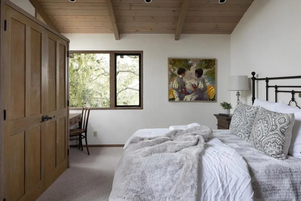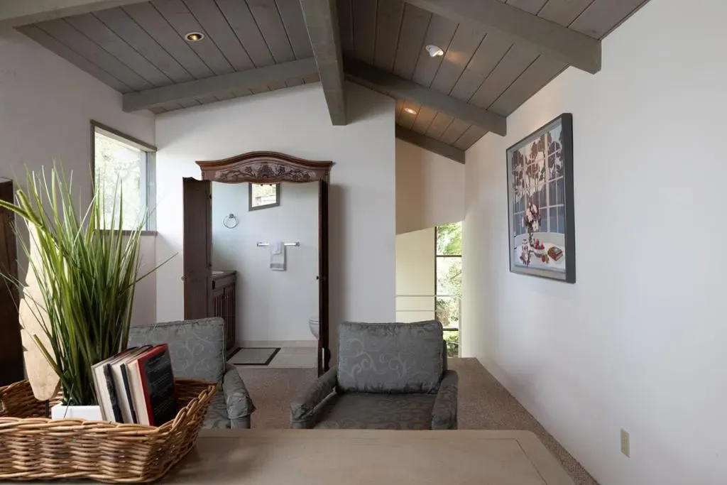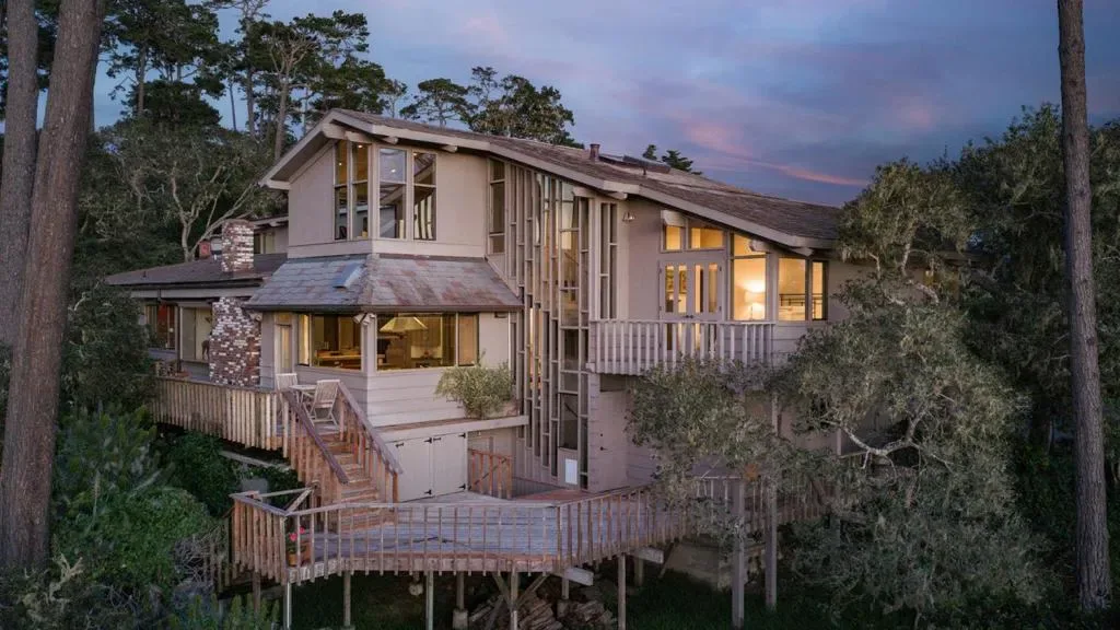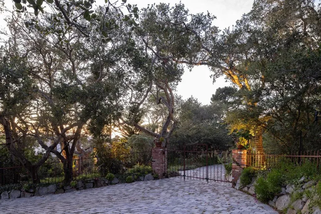 Nestled in a prime Pebble Beach location near The Lodge and Stillwater Cove, this stunning estate within an exclusive gated community offers privacy and natural beauty. Set on 1.35 acres, the 4,423 sq.ft. residence features 4 bedrooms and 5.5 baths, showcasing truly California architecture style with open beam ceilings, skylights, natural wood finishes, and abundant windows that fill the home with light and frame serene forested views. A charming brick courtyard leads to a beautiful entry, opening to a spacious living room that flows seamlessly into the dining area and kitchen with bar seating, ideal for everyday living and entertaining. A sitting room with wet bar and a private office with built-ins and a full bath offer versatile spaces suited for entertaining, work, or guest accommodations. The expansive primary suite offers a fireplace, sitting area, spa-like bath, and a unique loft office with a hidden half bath through armoire doors. Guest bedrooms, including one with a kitchenette, enjoy peaceful forest views. Expansive decks and manicured lawn grounds invite outdoor living, capturing partial views of Pebble Beach Golf Course, Pescadero Point, and Stillwater Cove beyond a tranquil wooded canyon. A 2-car attached garage completes this exceptional Pebble Beach retreat.