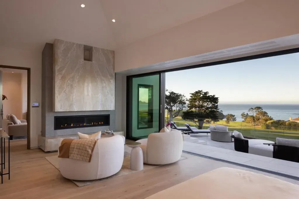 Commanding one of the most revered and tightly held vantage points along 17 Mile Drive, this newly constructed estate occupies a generational position overlooking the iconic 14th hole of Pebble Beach Golf Links, with the Pacific Ocean beyond. Defined not simply by view but by absolute placement, opportunities of this caliber are exceptionally rare. The residence is modern yet timeless – an architectural expression of confidence, precision, and restraint. Designed for legacy ownership, the home prioritizes main-level living, with principal spaces opening to expansive terraces that create a seamless relationship between interior and horizon. Uninterrupted golf course and ocean vistas reinforce the home’s singular connection to its setting. Every element has been executed to the highest standard, with uncompromising attention to craftsmanship and longevity. Spacious yet intimate, the home balances grand-scale entertaining with moments of quiet retreat. Crowning the estate is a rooftop pavilion, served by dual elevators, offering panoramic coastal views and an outdoor entertaining kitchen – an elevated sanctuary that establishes a rare sense of authority. Defined by position, discretion, and permanence, this is a singular offering along one of the world’s most iconic coastlines.