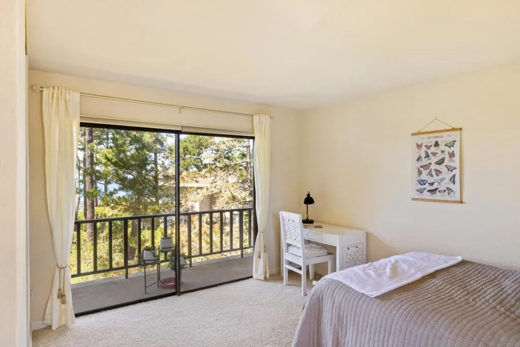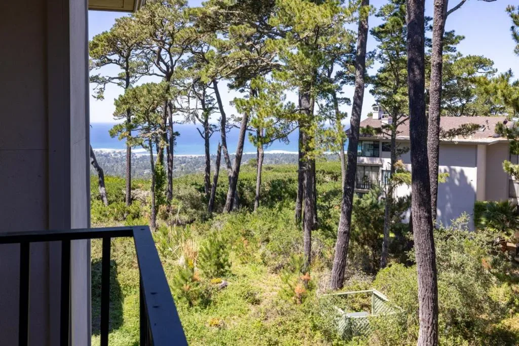 Welcome to your dream coastal retreat in coveted Ocean Pines. This top-floor end-unit condo offers breathtaking whitewater ocean views and exceptional privacy. The expansive primary suite is a true sanctuary, featuring sitting area, dual closets including walk-in, updated ensuite bath and private balcony perfect for soaking in the scenery. Positioned on the opposite wing, the second bedroom provides flexibility and privacy with ensuite potential and its own ocean-view balcony. The open living and dining area boasts vaulted ceilings, a cozy gas fireplace, and walls of windows framing the stunning coastal landscape of pine forest and blue ocean. This beautiful home has been recently upgraded with new indoor laundry, new water heater, new kitchen appliances, and new modern smart home enhancements including smart lock, alarm system, WiFi-enabled systems, water monitoring, smart thermostats, and USB outlets. Additional highlights include both garage space and carport, elevator access, a beautifully maintained central courtyard with gardens and seating areas, and a private-feeling front porch walkway. Located within the gates of Pebble Beach, enjoy close proximity to world-class golf, dining, and pristine beaches. Experience the perfect blend of comfort, luxury, and coastal serenity.