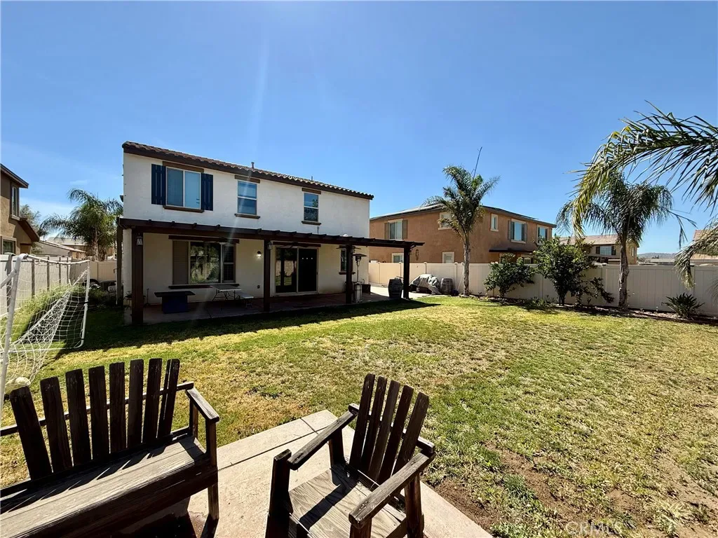 Spacious 5-bedroom, 3 full-bath home built in 2018, offering a functional layout with generous living space. Features an open floor plan, well-sized bedrooms, and a convenient mud room. The garage includes epoxy floors and an EV charging outlet. Enjoy a large backyard with an awning and two lemon trees, providing plenty of space to relax or entertain. Washer, dryer, refrigerator, dishwasher, and microwave are included. The HOA offers biking trails, a pool, jacuzzi, and BBQ area. Great opportunity to own a newer home in Perris and low HOA.