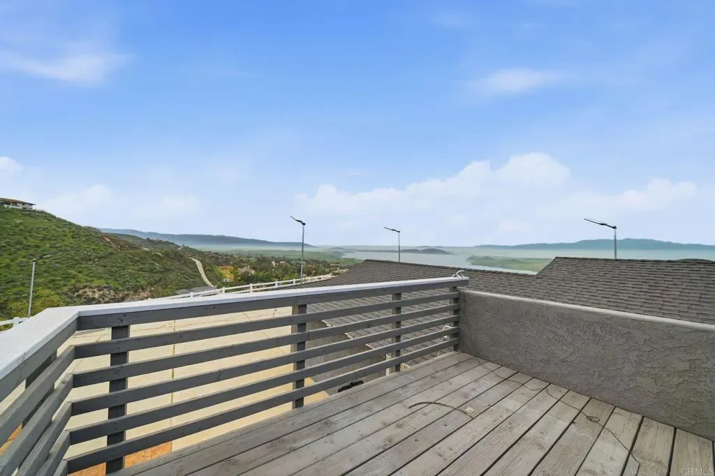 Perched atop approximately two private acres in the desirable Lake Mathews Estates, this stunning hilltop home offers breathtaking panoramic views of the lake, lights, and surrounding mountains paired with exceptional privacy, usable land, and thoughtful upgrades throughout. This spacious 6 bedroom, 4 bath residence is ideal for large or multi-generational living, featuring dual primary suites located on separate levels, each with their own renovated private bathroom. The upstairs primary retreat enjoys direct access to a private balcony, perfectly positioned to take in sweeping lake and city views. At the heart of the home is a centralized, open kitchen designed for both everyday living and entertaining, offering generous butcher block counter space, a custom storage island, and a large utility style sink. The kitchen flows seamlessly into the dining area with original brick fireplace, breakfast nook, family bonus room, and an oversized living room framed by picture windows capturing the surrounding scenery. The interior showcases solid surface flooring throughout, including herringbone patterned tile and wood style laminate. Additional highlights include split ac units servicing individual rooms, mounted televisions, a dedicated laundry room/ pantry, and flexible sixth room currently used as an office that can easily convert to a bedroom or additional living space. Recent upgrades enhance both comfort and efficiency, including dual pane vinyl windows and sliders, updated HVAC, plumbing and electrical improvements, a composite roof, and a main septic system with an additional secondary system. The home is move in ready! Outside, the property continues to impress with multiple large, flat usable areas, ideal for animals, gardening, RV or trailer parking, a future ADU, shop, or expanded outdoor entertaining. The lower lot offers excellent versatility, while perimeter fencing, 9 exterior ring cameras and solar lighting provide added security and ambiance. A 2 car garage offers ample storage, and the newly paved road adds ease of access and value. While privately situated atop the hill, this serene retreat is conveniently located just south of Riverside, approximately 15 minutes from Corona, with access to both the 15 and 215 freeways offering rural luxury living without sacrificing proximity to nearby amenities. A rare opportunity to own a peaceful, view-filled estate with land, flexibility, and timeless appeal.