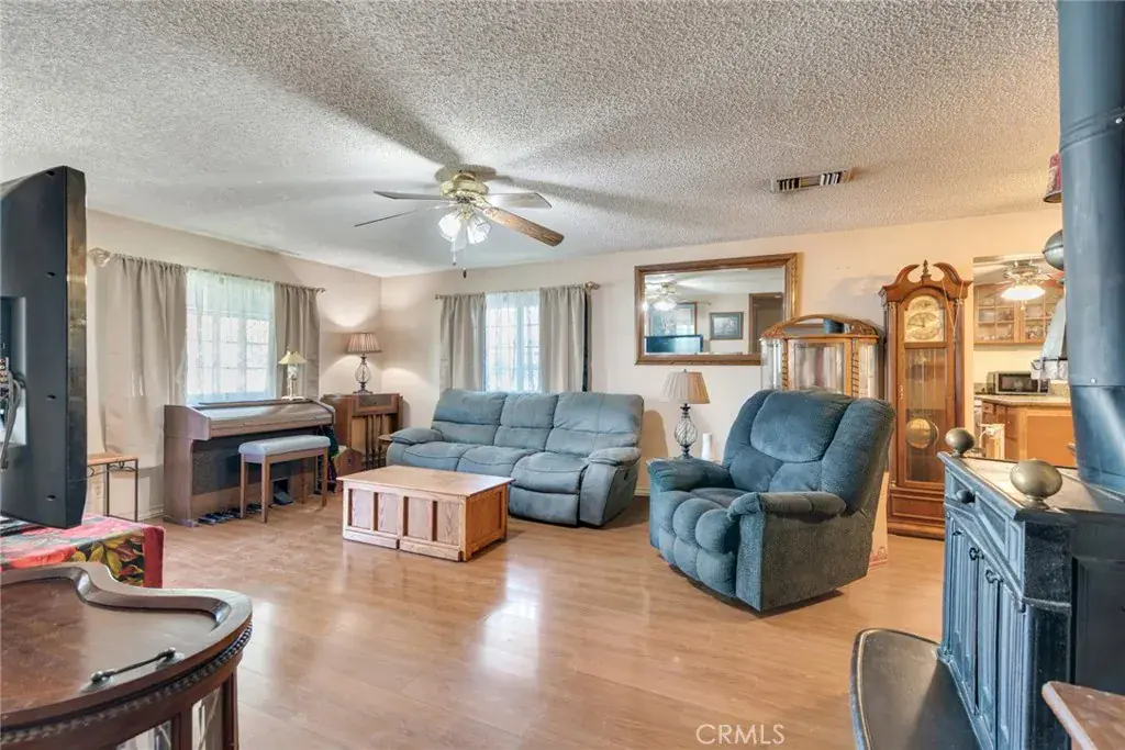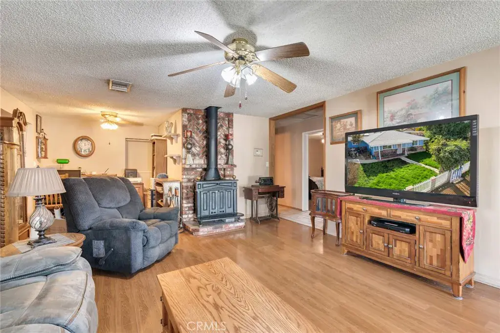 Welcome to your serene retreat on .67 acres of flat, usable land—where comfort, privacy, and modern efficiency come together beautifully. This charming 3-bedroom, 2-bathroom home features an open layout with newer exterior paint, laminated flooring, dual-pane windows, ceiling fans, and a cozy wood-burning fireplace that creates a warm, inviting atmosphere on cool winter nights. The kitchen is the heart of the home, offering granite countertops, a center island with extra storage, and an easy flow into the dining area and the extra-large enclosed carport, currently used as a versatile workshop/craft room. A separate indoor laundry room with additional storage cabinets adds convenience and functionality to the home.