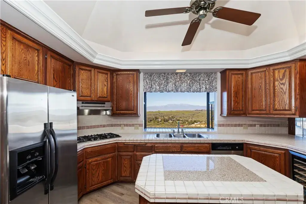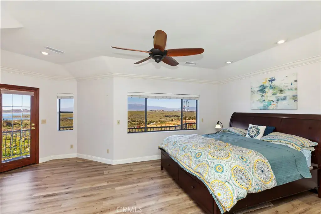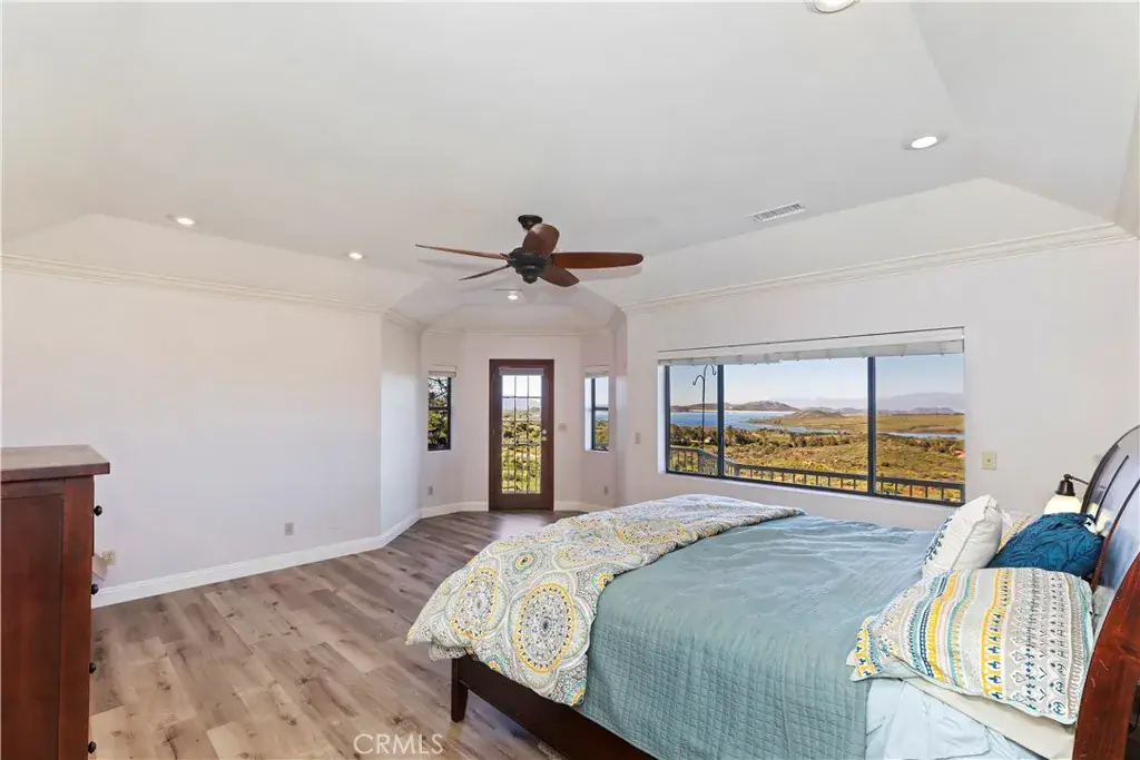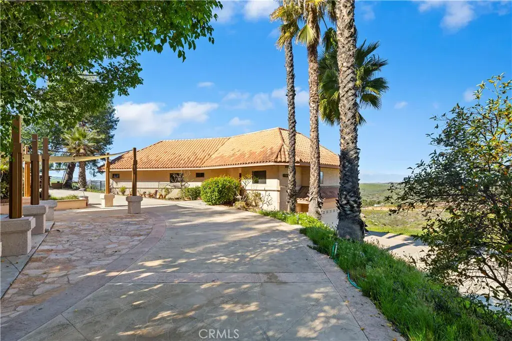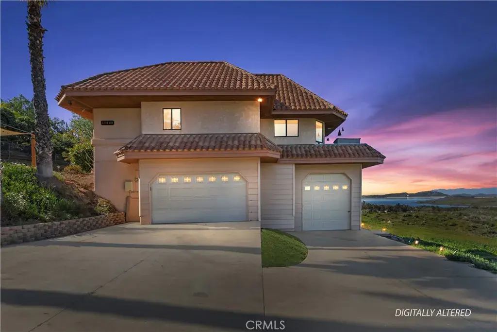 Get away from it all—enjoy peaceful rural living just 15 minutes from the city. This custom-built home, constructed in 1989, sits on over two acres of land and offers breathtaking panoramic views that stretch for miles. An impressive 80-foot wraparound deck provides the perfect vantage point to enjoy sweeping views of Lake Mathews, mountain vistas and sparkling city lights.