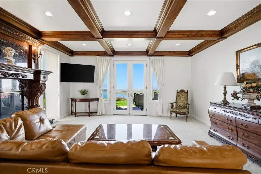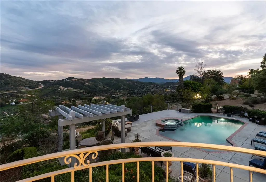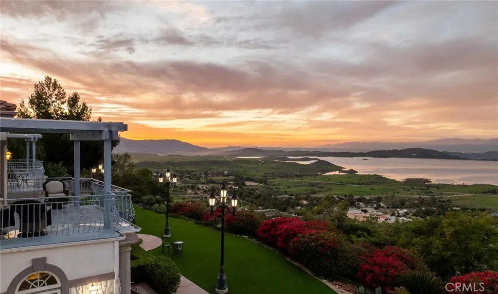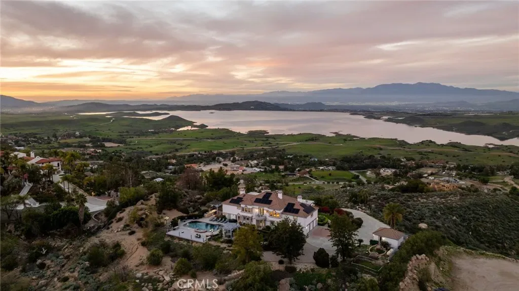 Positioned on 4.33 acres overlooking Lake Mathews, this exceptional custom estate offers Panoramic Lake, Valley & Mountain Views | Gated Entry | Private Hilltop Setting. Enjoy sunrises to the east | sunsets to the west | seasonal snow-capped mountain views, creating a dynamic natural backdrop. The residence blends classic architectural presence with modern amenities and a private hilltop setting. A Gated driveway leads to a spacious interior featuring Soaring Ceilings | Multiple Living Areas | Formal Dining | Library/Office. The chef’s kitchen includes Granite Countertops | Custom Cabinetry | Stainless Appliances, opening to the family room with Fireplace | Open-Concept Entertaining. The primary suite offers Sitting Area | Double-Sided Fireplace | Spa-Style Bath | Multiple Balconies | Scenic Views. Outdoor amenities include Pebble-Finish Pool & Spa | Covered Patios | Two Cabanas | Built-In BBQ Island | Landscaped Grounds | Fruit & Citrus Trees | Elevated Stone Paver View Patio. Currently utilized by the seller for short-term rental use | Income-producing configuration | Historical rental information may be available upon request. The property offers added flexibility with two legally distinct parcels (separate APNs), providing future development or expansion considerations subject to Riverside County approval and buyer verification. Features such as NO HOA | SOLAR PANELS | Detached Workshop | Extensive Parking may support a variety of ownership strategies including luxury retreat use, multigenerational living, or long-term investment positioning. R-A-2 1/2 zoning and the private hilltop setting contribute to the property’s versatility; buyers are encouraged to independently verify all use options, zoning allowances, and rental regulations.