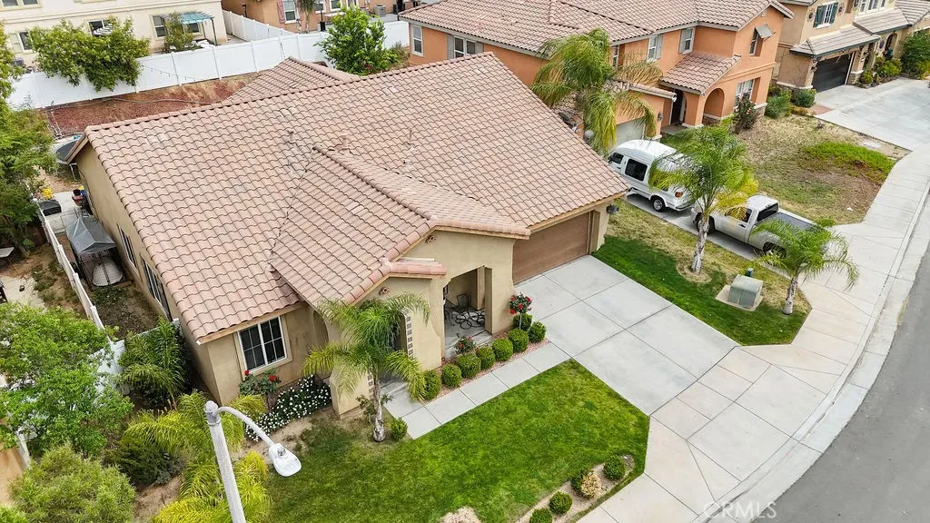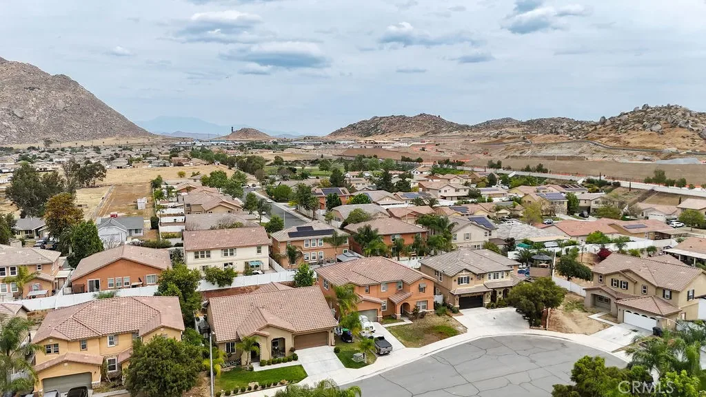 WELCOME HOME to this beautiful 4-bedroom, 2-bath home tucked away on a cul-de-sac in a family-friendly Perris neighborhood, with lovely mountain views. From the moment you arrive, you will appreciate the great curb appeal, Spanish-style architecture, and inviting front porch. Inside, the homeowner has tastefully converted the front living area into two flexible bonus rooms currently used as a playroom and an additional bedroom. Continuing down the hall, you will find an open-concept kitchen, dining area, and family room designed for comfortable everyday living and easy family interaction, with ample storage and generous counter space for meal prep and entertaining. The spacious primary suite features an ensuite bathroom with dual sinks, a soaking tub, and a walk-in shower, while three additional bedrooms share a well-appointed hall bathroom. Step outside to a backyard with plenty of room for kids and pets to run and play, along with a patio area perfect for outdoor entertaining. Conveniently located near parks, Lake Perris, shopping, and entertainment, this home is ready for its new owner—COME SEE IT TODAY!