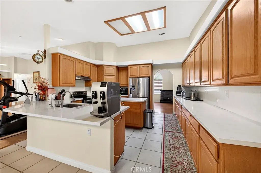 The expansive kitchen boasts oak wood cabinetry, stainless steel appliances, abundant cabinet space, a large pantry, and generous counter space. An island separates the breakfast bar and cozy breakfast nook, creating both functionality and style.