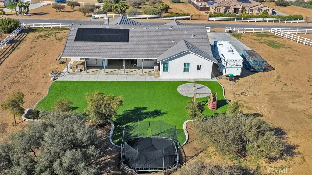 Welcome to this custom-built 2020 home located in the High Desert’s sweet spot! Designed with comfort and efficiency in mind, this home features owned solar, and tankless water heater helping keep energy costs low. The attractive stucco exterior with finished eaves creates great curb appeal, while inside you’ll find a spacious living area with open-beam ceilings, creating an airy setting perfect for relaxing or entertaining. The custom kitchen cabinetry offers both style and abundant storage, while plank-style tile flooring throughout provides durability and easy care. Step outside to a generous lot stretching from front to back, offering space and privacy. The backyard features low-maintenance artificial turf, perfect for enjoying the outdoors without the upkeep. On the garage side of the property you’ll find RV parking with added utility hookups, ideal for your RV or accommodating out-of-town visitors. Seeing is Believing, so make your private showing appointment today!