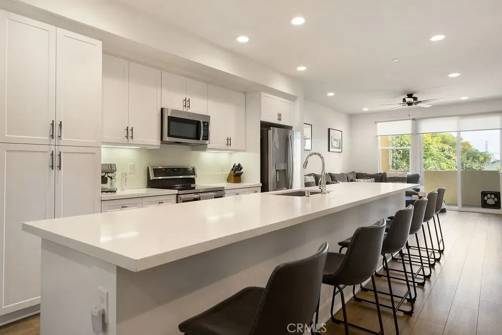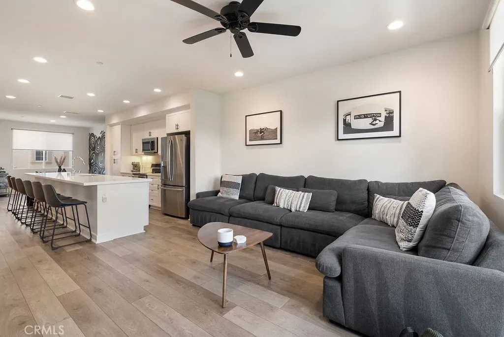 Welcome to 7686 Sunflower Dr, a modern & move in ready 2 bedroom, 2.5 bath front facing townhome built in 2018. This contemporary tri-level residence offers the perfect blend of style, efficiency & low-maintenance living. Thoughtfully designed, the home features an open-concept living area filled w/ abundant natural light, custom window treatments & a spacious kitchen complete w/ quartz countertops, stainless steel GE appliances & an oversized center island, ideal for entertaining or everyday living. The seamless flow between the kitchen, dining & living areas creates a bright & inviting atmosphere. Upstairs, you’ll find two primary bedrooms, both w/ en-suite bathrooms & walk in closets. The larger suite offers an oversized bathroom w/ a spacious shower, while the second bathroom includes a tub. Additional highlights include a paid off solar panel system for energy efficiency & reduced utility costs, an attached 2-car tandem garage w/ direct access & extra storage, outdoor balcony off the living room, indoor laundry w/ a newer stackable washer/dryer, custom vinyl flooring throughout & newer carpet on the stairs. This stylish home offers modern comfort, thoughtful upgrades & convenient living in a desirable Pico Rivera location.