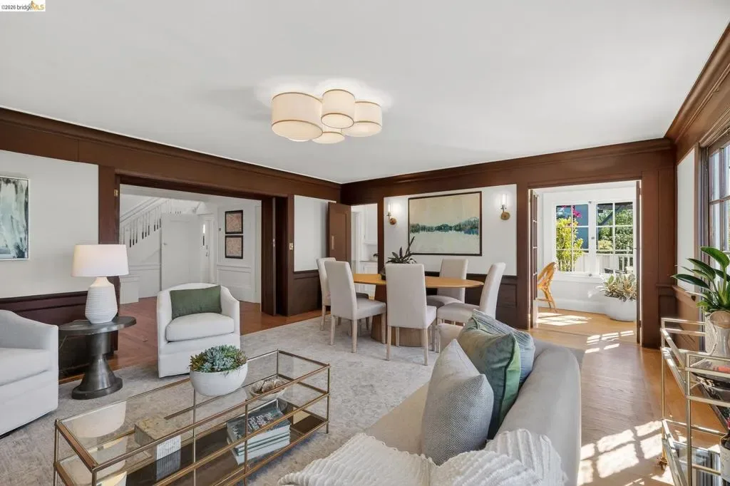 Built in 1910, this classic revival-style home offers stunning San Francisco Bay views and timeless architectural details, including hardwood floors and classic moldings, thoughtfully updated for modern living. Ideally located in central Piedmont, this home is just blocks from top-rated schools, Piedmont Park, and the new swim center. A grand foyer leads to an elegant living room with fireplace and built-in bookcases. The main level features two bedrooms, including a bright primary suite with a wall of windows capturing breathtaking Bay views, plus an adjoining office. A renovated bath offers dual marble vanities, soaking tub, and separate shower. An upper-level view room with half bath is perfect for entertaining or enjoying fireworks on July 4th and stargazing. The lower level showcases a remodeled chef’s kitchen with marble countertops, island seating, custom cabinetry, and two pantries. A breakfast room and a formal dining room with fireplace open to a large view deck for seamless indoor-outdoor living. Beautiful terraced gardens with mature plantings and a lemon tree lead to a level lawn for play or a game of fetch with your dog. Below you will discover a hidden rose garden for quiet meditation. A superb location, breathtaking views and modern updates, don’t miss out. Views: Downtown