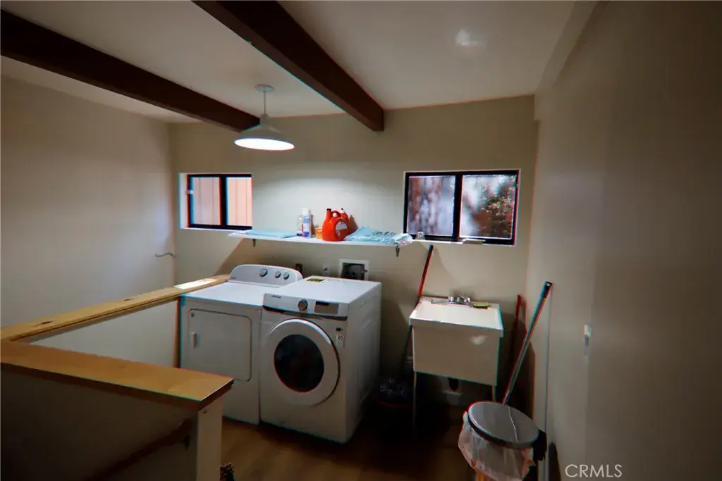 There are three bedrooms, one bathroom, laundry and living room on the first floor. master bedroom, dining room, living room, one bath, kitchen on the second floor. Second story living room has nice fireplace for these romantic winter evenings covered by sunlight coming from two large skylights.
