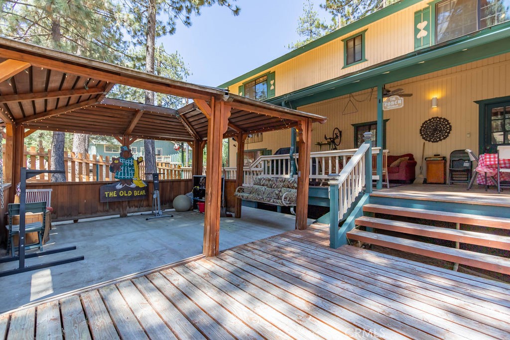 Outdoor spaces are equally appealing, with a large backyard gazebo and expansive 60-foot covered front and rear porches—perfect for enjoying all seasons. Situated on a mostly flat, fenced corner lot, the home provides easy year-round access from the main highway and is conveniently located near the golf course, tennis courts, hiking trails, and local amenities.