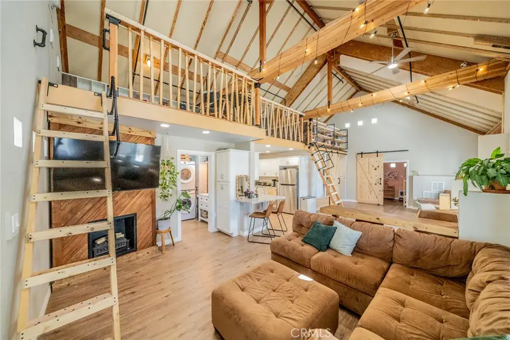 Welcome to Pinon Hills!!! Just under 2 acres, this lot is conveniently close to both Phelan road and Highway 138. This 1,229 sqft home is built with strong CMU block, and large wood timber and has much to offer. With 2 Bedrooms and 1 Bathroom on the main floor and a Kitchen that opens up to the living room – – perfect for entertaining or enjoying family gatherings. Additionally, the first ladder takes you to the loft/office space with a surplus of cubbie storage. The second ladder is on a track that provides access to the middle loft space (the owner has a gym in it) and also the bookshelf above the main bedroom. This property is also equipped with solar heaters that absorb heat from the sun and pump it via low-energy fans into the house. It works quite well to keep the home warmer year round. The shed is 24’x12′ and perfect for storing all your tools. Outside the shed, there are two-220 Volt plugs. Seller currently uses one 220V outlet to charge their electric vehicle and the other one to power a RV. Additionally, a walking path around the property has been created, perfect for exercising or soaking up the natural beauty. Only 10 minutes away from a highly rated charter school, Heritage, and short distance to mountain town Wrightwood and Ski Resort.