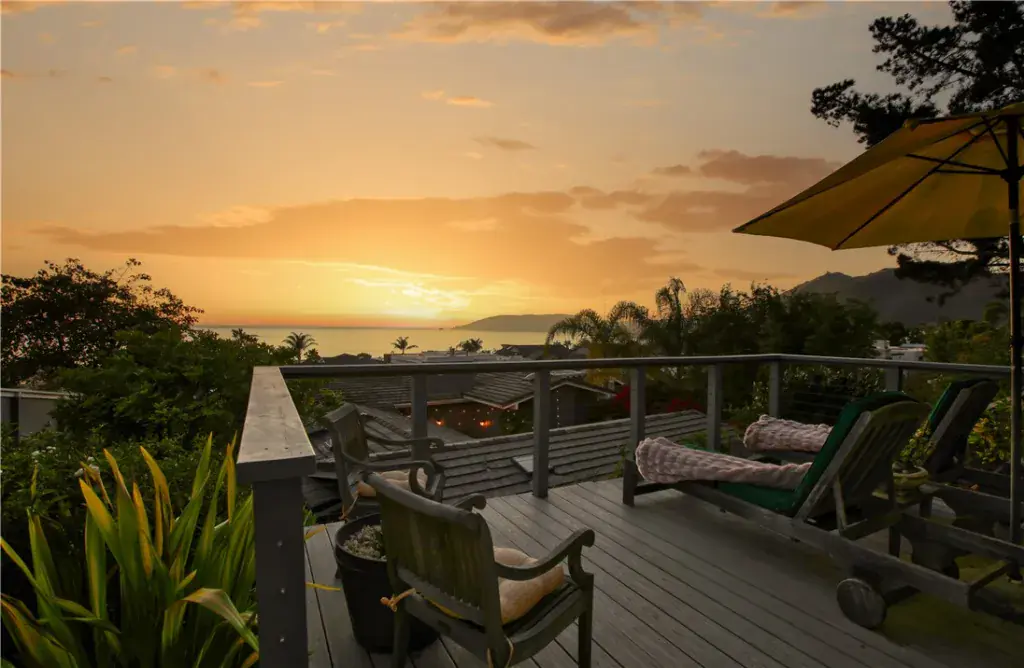 From the moment you arrive, you will appreciate the timeless curb appeal of the classic Cape Cod style, mature landscaping and the welcoming front patio for soaking in the sunset vistas over the Pacific. The beautifully designed interior space features ocean views from the entryway, sitting room, dining room, kitchen, living room, and front primary bedroom. The home features three luxurious bedrooms, two of which are spacious and relaxing primary en-suites. The first primary suite offers stunning ocean views from the private deck with extensive built in shelving, dual vanity sinks, a cast concrete countertop with a lavish separate walk in shower and jetted bath. The second suite is secluded in the rear of the home with a cozy corner fireplace and opens to a charming private courtyard. The expansive main living room looks inward over the kitchen and dining room with a warm and inviting fireplace, wide-plank wood flooring, custom lighting with two large windows looking out to expansive ocean views. The gourmet kitchen is a chef and entertainer’s dream, with handcrafted maple cabinetry, quartz countertops, high-end stainless appliances and breakfast bar. Top of the line Anderson wood clad windows and skylights throughout the home provide warmth and ample natural light. This coastal oasis also features sublime outdoor living areas; enjoy a private courtyard with a beautiful stainless steel 6 burner BBQ in a waterfall edged white stone countertop, a fireplace and a serene water feature just steps from the kitchen. The tranquil backyard features a jacuzzi tub with a covered arbor, raised flower beds and a stairway leading to the top of the property with unobstructed, panoramic views from Avila Beach to Oceano.