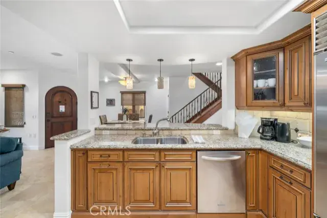 Fully furnished included, inside discover a beautifully upgraded open-concept floor plan with high-end finishes throughout. The chef’s kitchen is a true showstopper, featuring granite countertops, premium stainless-steel appliances, reverse osmosis system and stylish fixtures—perfect for entertaining or a relaxing night in. Recessed lighting and a cozy fireplace create an inviting ambiance in the living area, which flows effortlessly into the dining space.